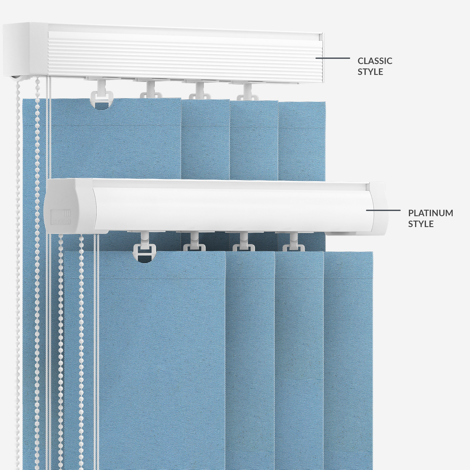 Bring your room together with this Touched by Design Deluxe Plain Powder Blue blind. Made from the finest dimout material, this blind gives you the perfect balance of light in your home. It blocks out harsh sunlight and warms your home with a soft glow. This vertical blind is an elegant way to bring privacy to your room. The slats work to block out the outside world, leaving you in your own private sanctuary. All of our products are manufactured in Huddersfield, West Yorkshire, by our skilled production team, who have well over a decade's worth of experience in making bespoke blinds and shutters. So you can feel confident when purchasing with us.