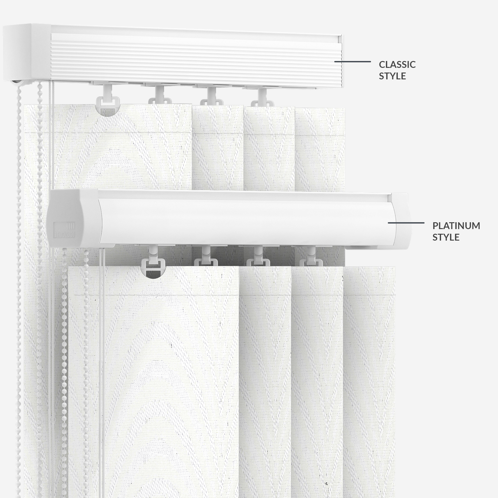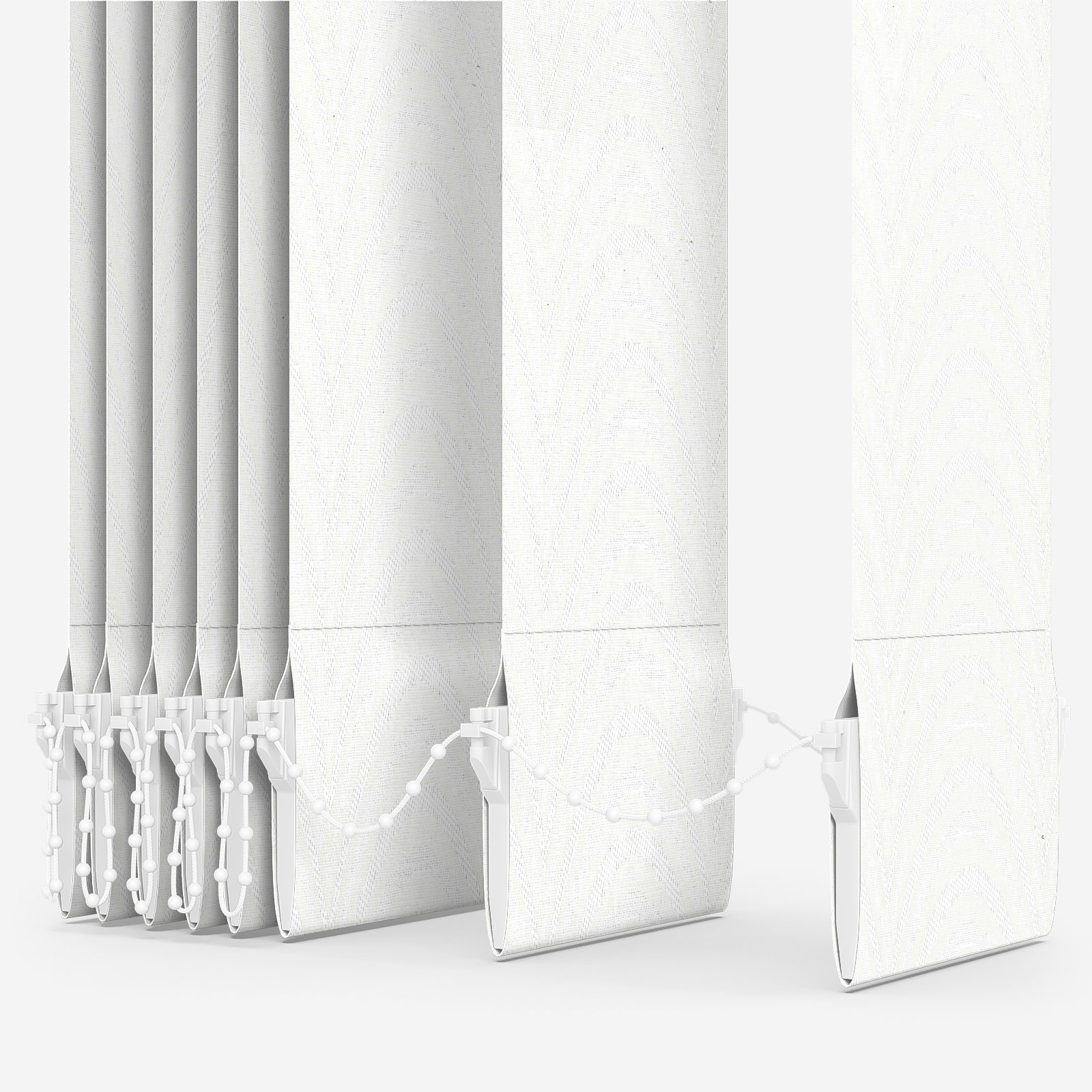 White vertical blinds are stylish accompaniments to both home and office decors. Made from 100% polyester, this dimout fabric promises to both maintain your privacy and help to keep sunlight from entering the room when closed; an easy-wipe fabric, Aspects Moreton White is a vertical blind that is incredibly easy to clean and maintain, promising years of quality.