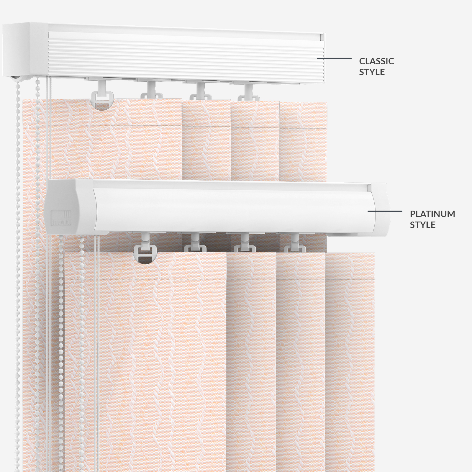 With its chic textured pattern, this apricot vertical blind will add interest and charm to your room whilst bring a fresh new style to your space.