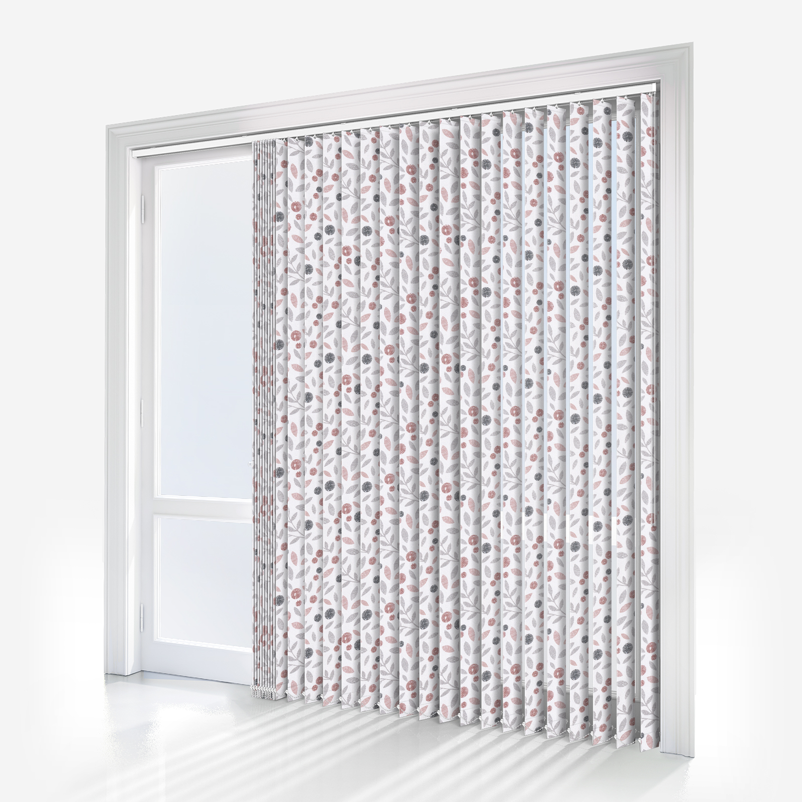 Be confident with this Louvolite Cotton Flower Blush vertical blind.