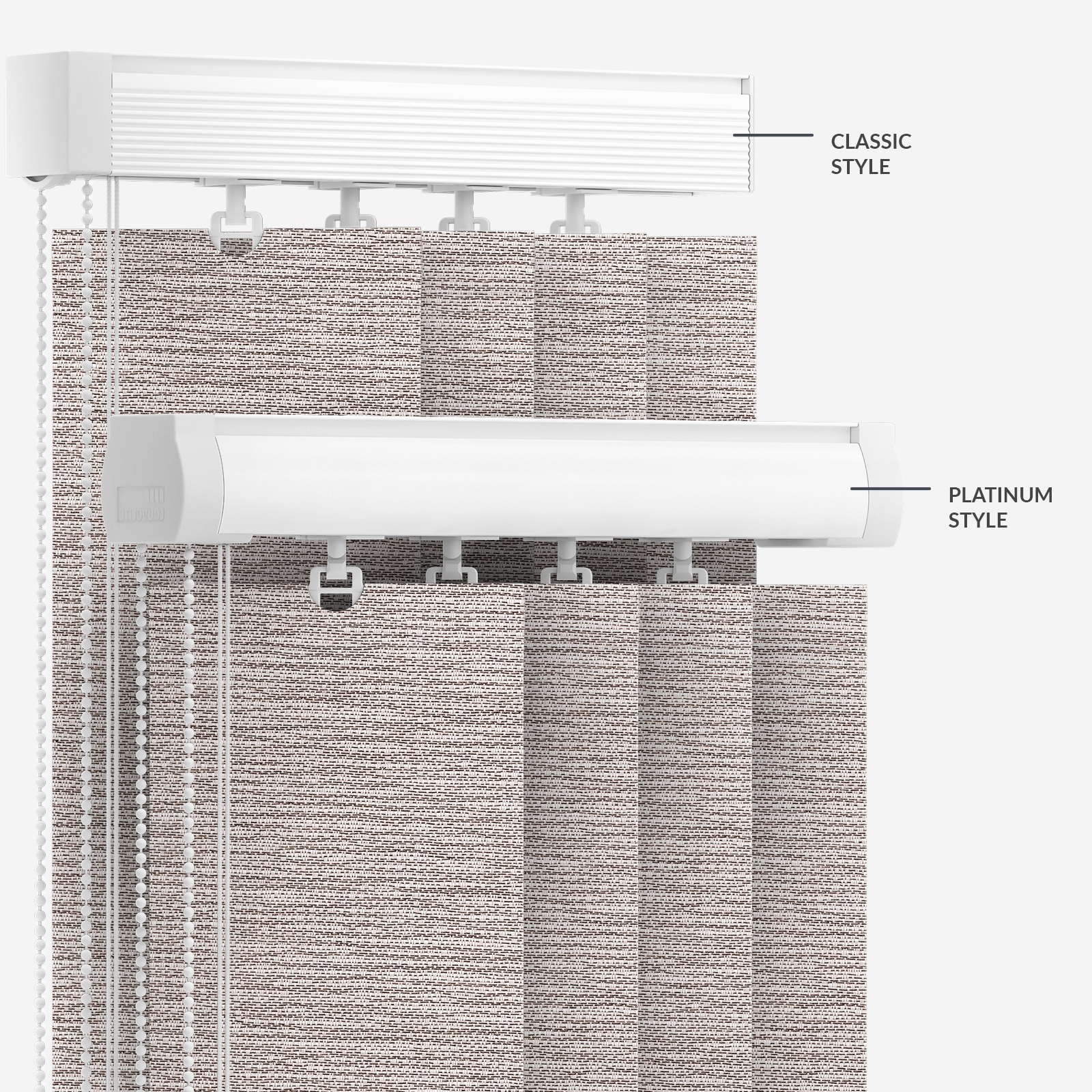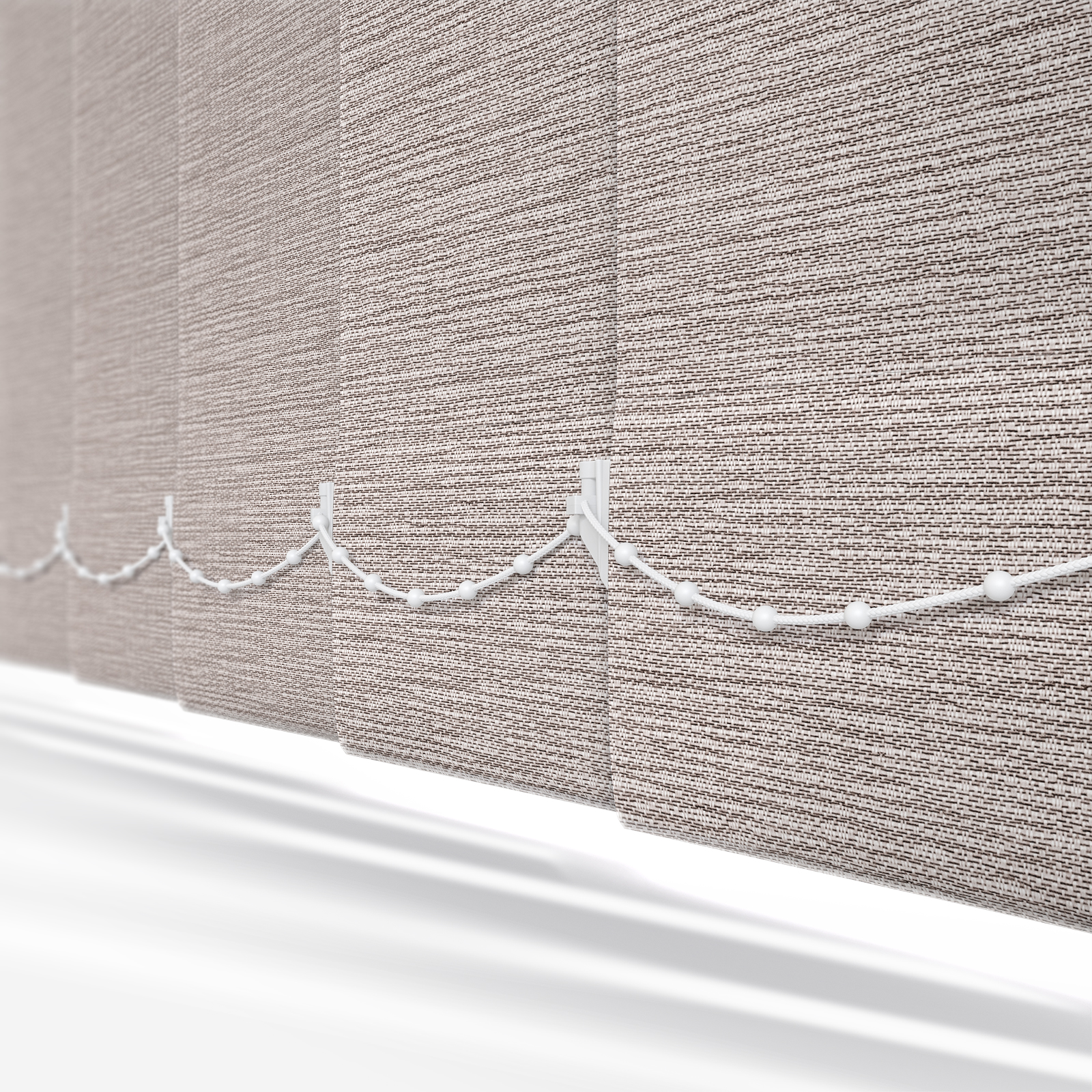 This linen vertical blind showcases an appealing plain pattern, providing your room and your interior look with versatile style.