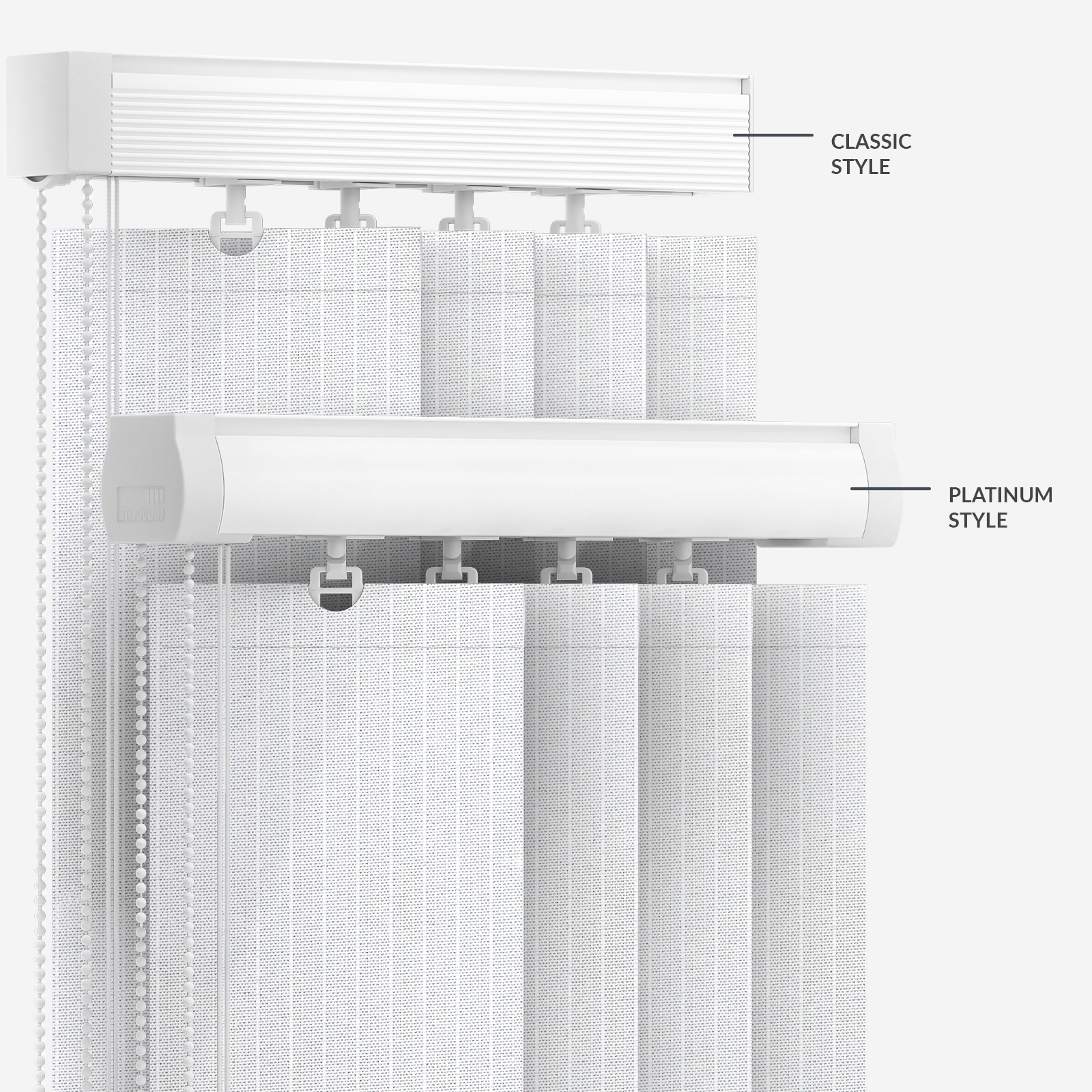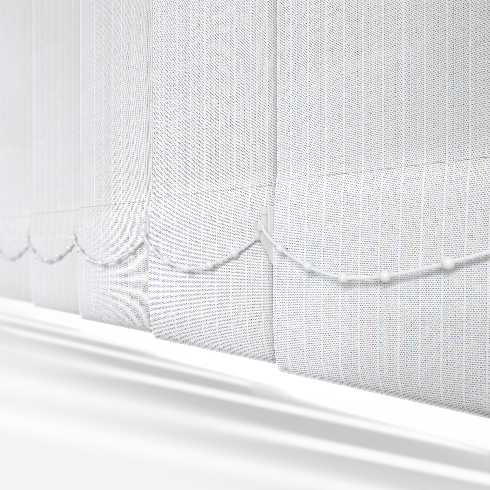 Incorporating a subtle striped pattern into the polyester louvres, this white vertical blind is perfect for the home and the workplace. Broadwell White is an easy-wipe fabric, which means that it is incredibly easy to clean, and like all our vertical blinds, it will be handmade to your exact specifications by our skilled manufacturers