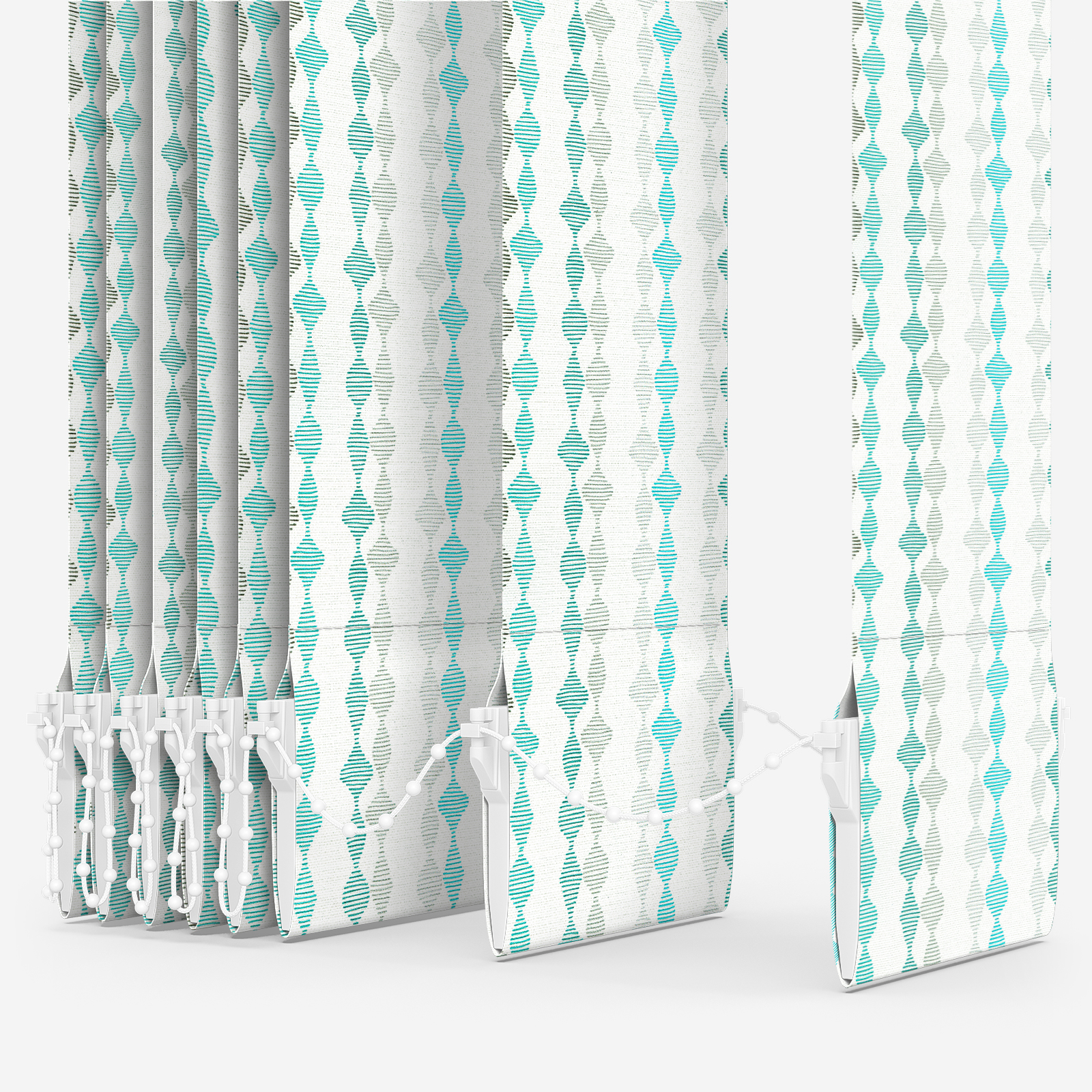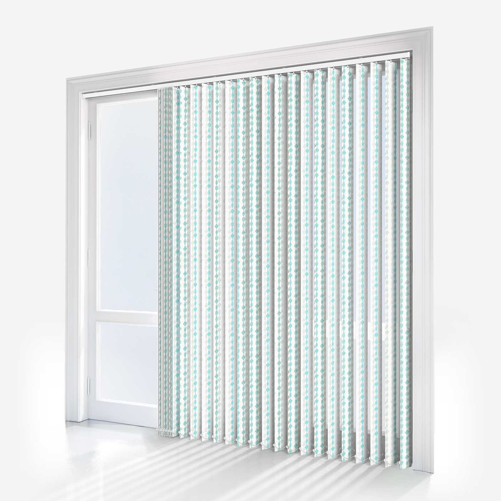 This turquoise vertical blind showcases an on-trend textured pattern, providing the style and quality to complete your room beautifully.