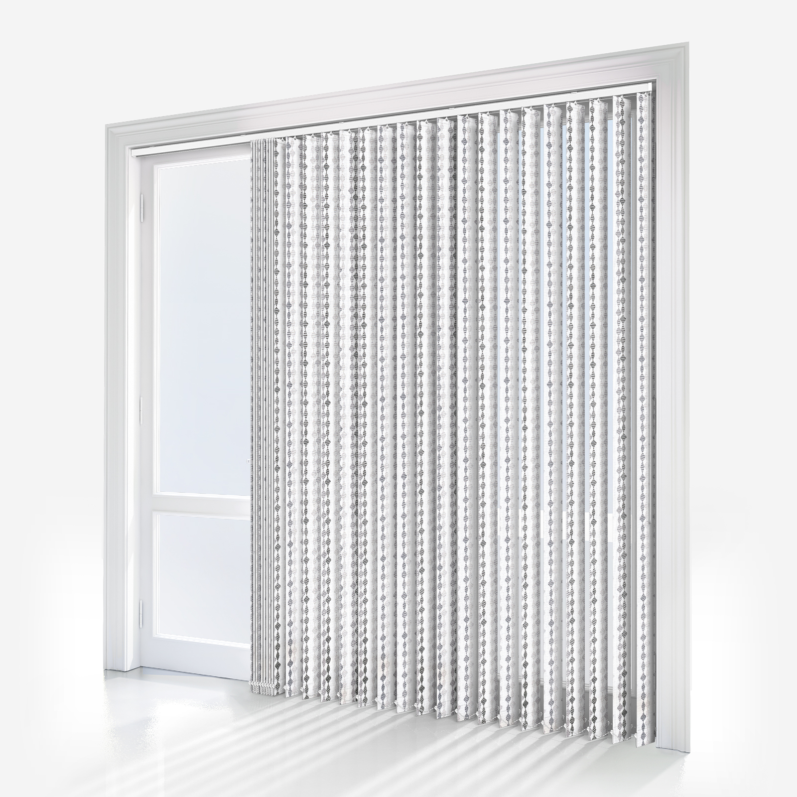 This shadow vertical blind features a stylish patterned design, bringing interest to your home and adding a finishing touch to your decor.