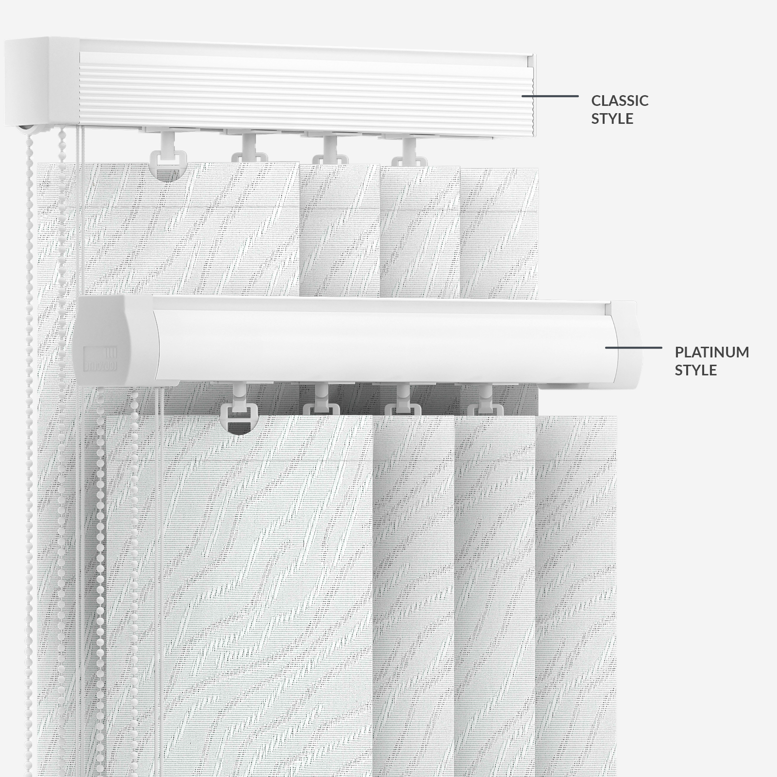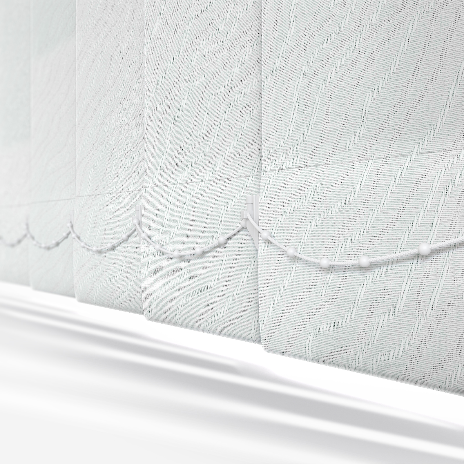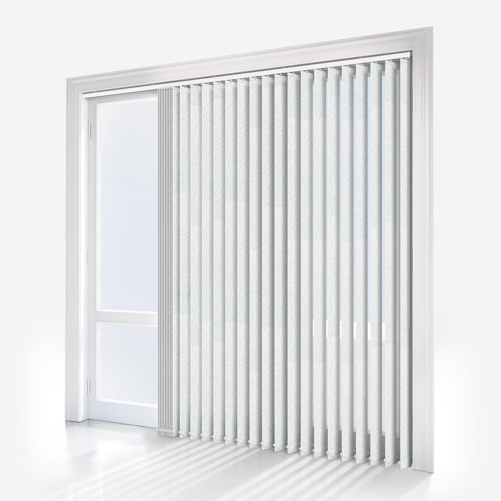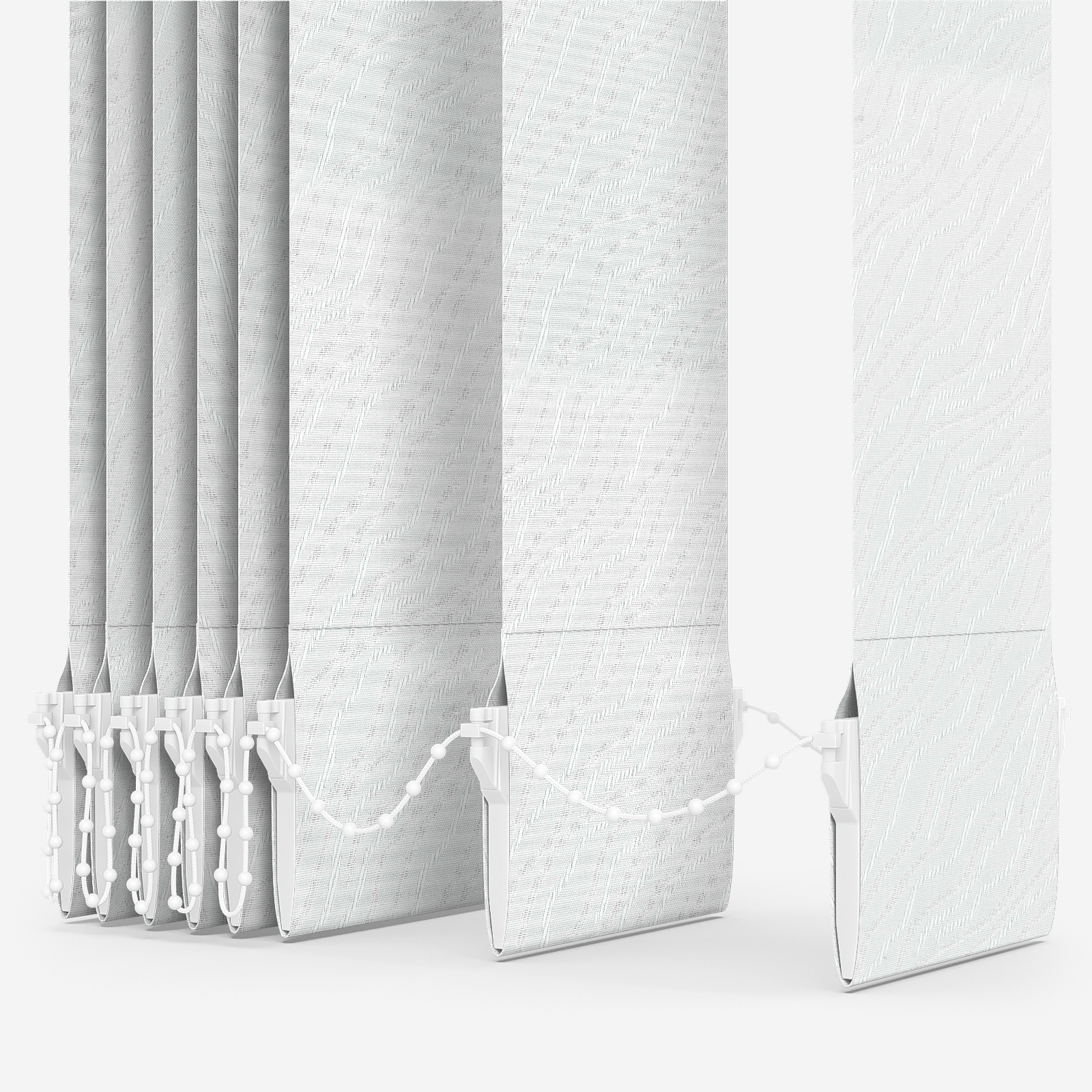 Made from 100% polyester, this white vertical blind is an easy-wipe fabric, making it extremely easy to clean. Derwent White incorporates a subtle wavy, textured pattern onto each louvre to make for a lightly artistic design. Like all our vertical blinds, it will be made to measure in Grange Moor, West Yorkshire to your exact measurements.