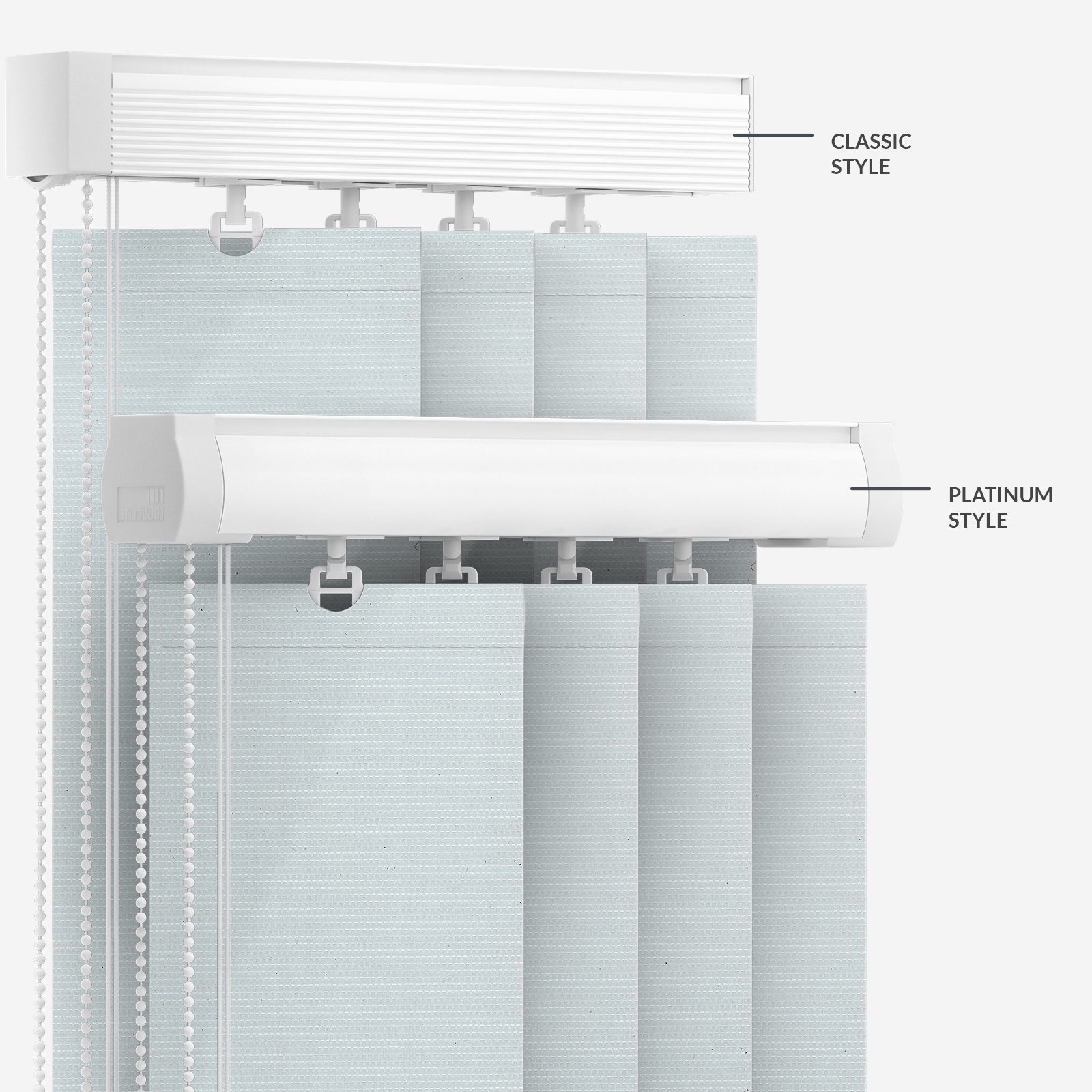 Combine classic and contemporary with this United Aqualush Grey Vertical Blind.