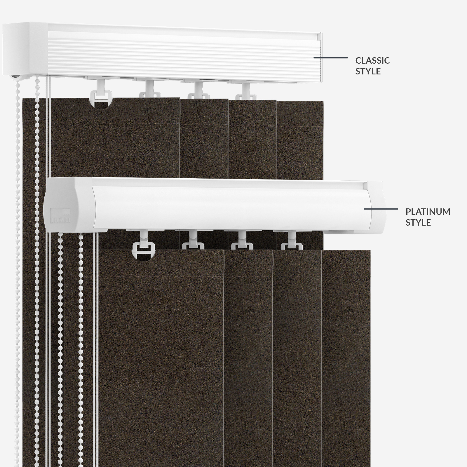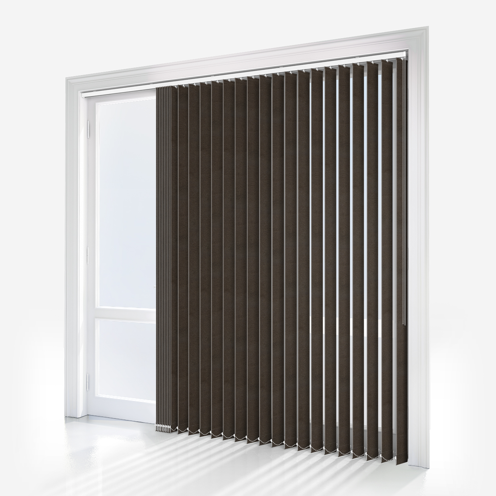 This dark brown vertical blind showcases an on-trend plain pattern, providing the style and quality to complete your room beautifully.