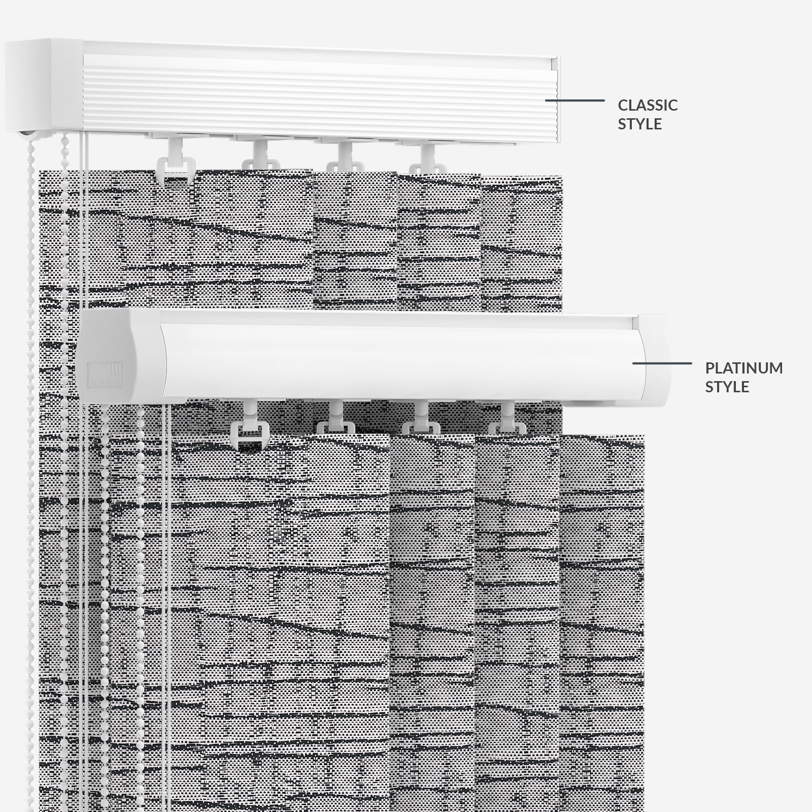 Displaying a chic patterned pattern and pleasant slate colour, this trending vertical blind will inject style into your space.