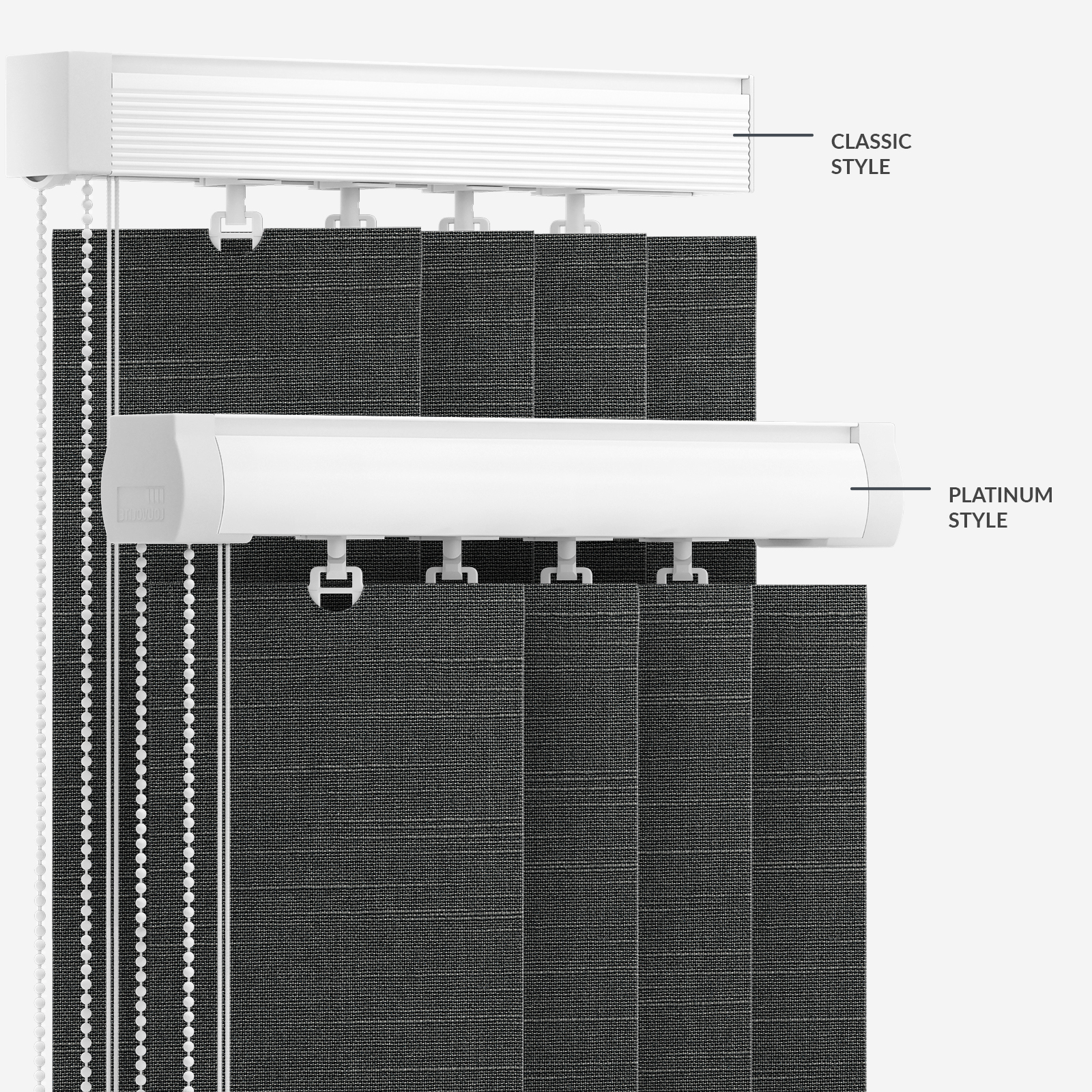 With its eye-catching plain pattern and timeless empire tones, this popular vertical blind will frame your interior with style.