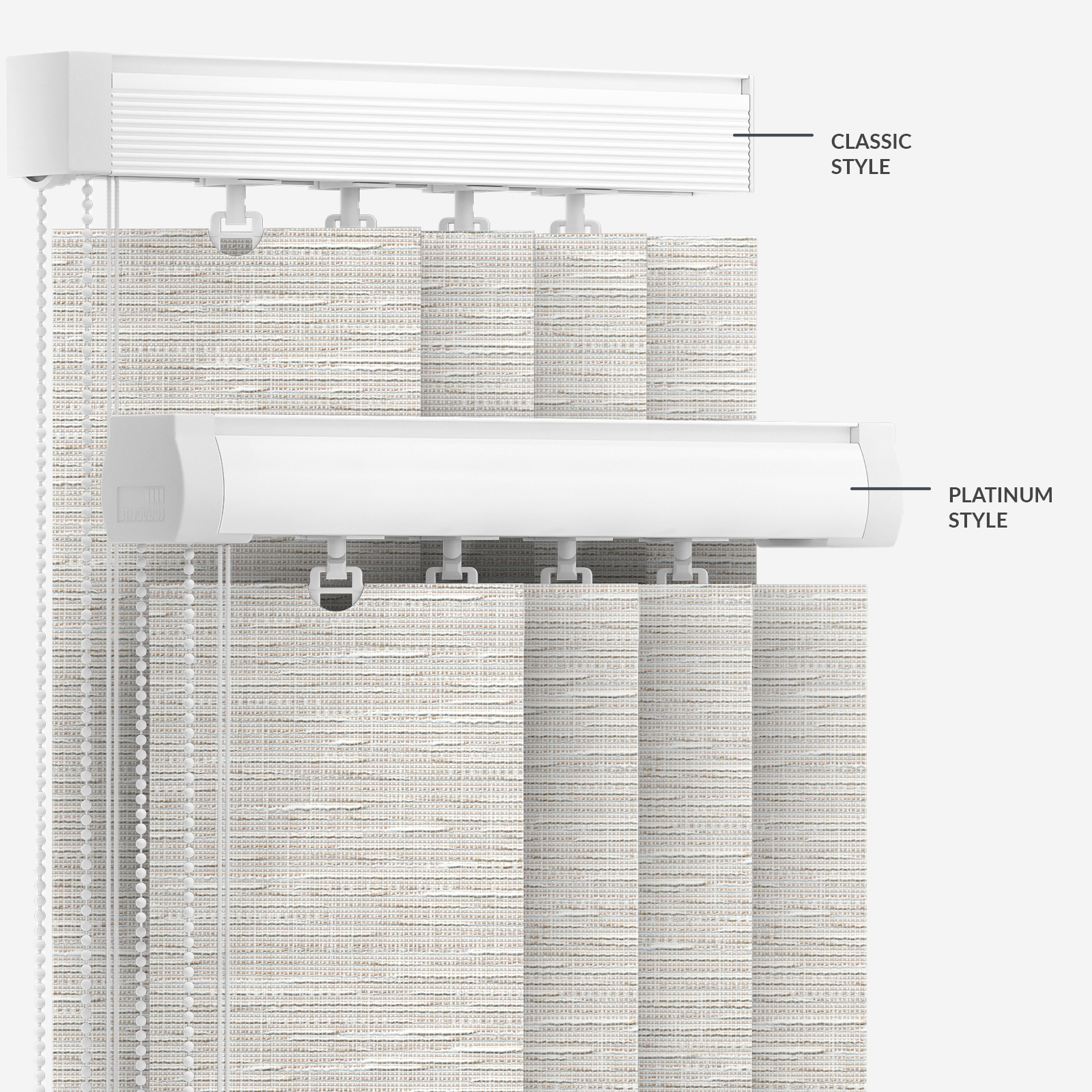 With its eye-catching textured pattern and timeless oatmeal tones, this popular vertical blind will give your decor a fresh new sense of style.