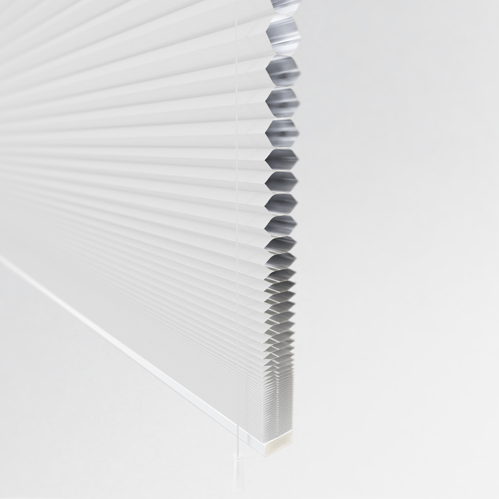 Honeycomb refers to the series of diamond cells created when the two layers of fabric are combined. The cells fill with air, which in turn enhances the thermal properties of the room. That way, hot air is retained when its cold and kept out during the summer months. Part of our wider range of pleated blinds.