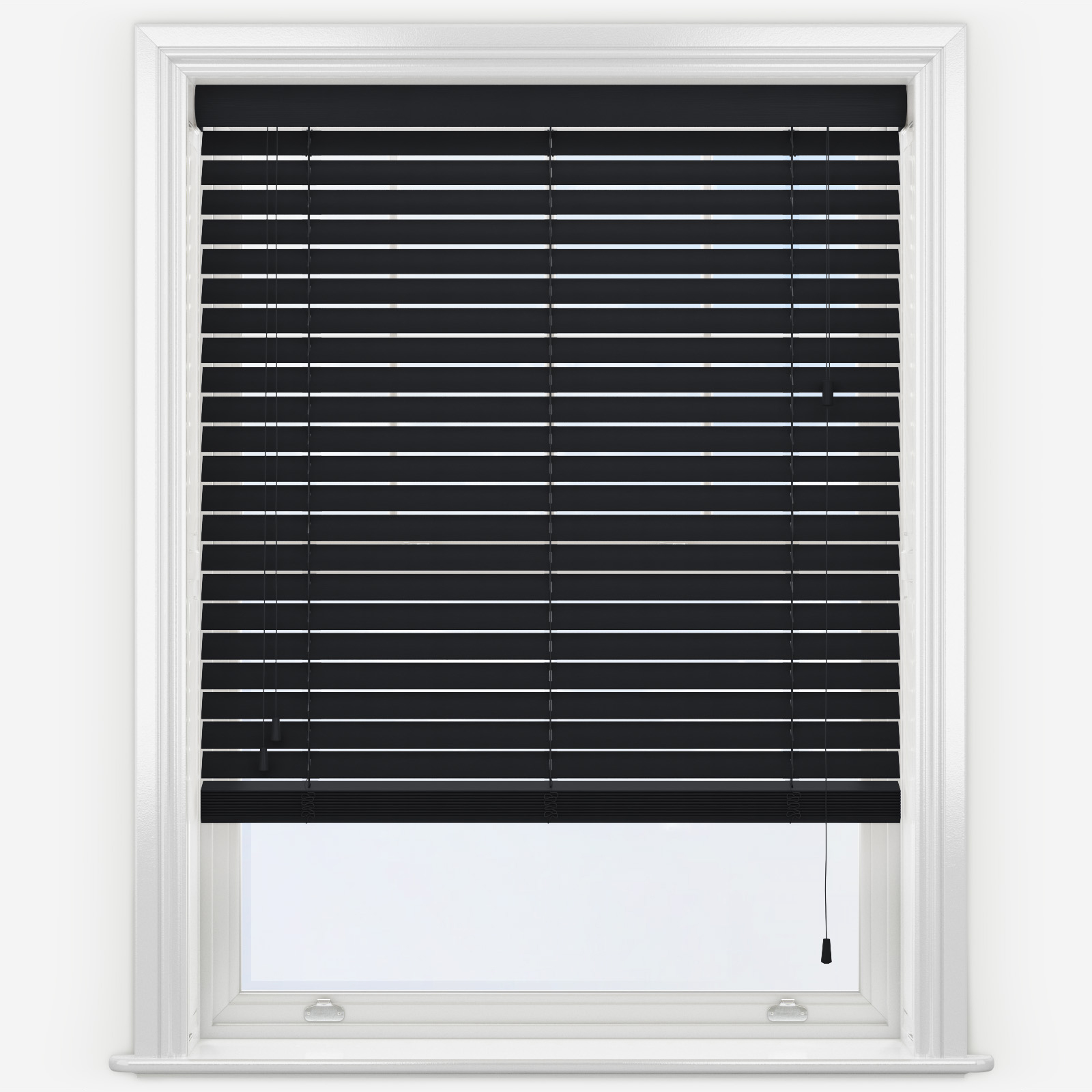 Embrace the dark with the Dalby Black Wooden Venetian Blind. Effortlessly stylish, the jet black will look spectacular as part of a monochrome decor theme, or will enhance brights for those that adore the use of bold colours!