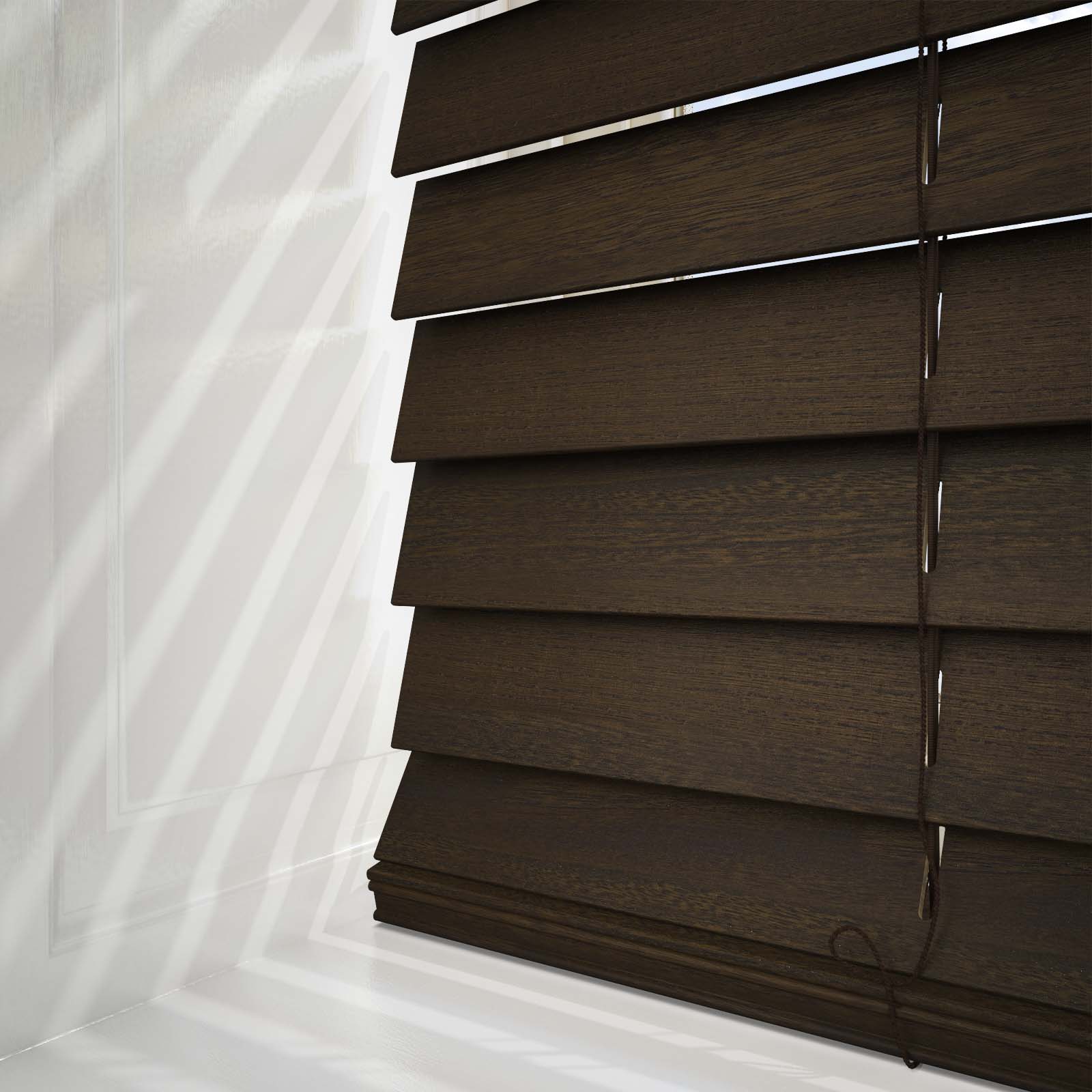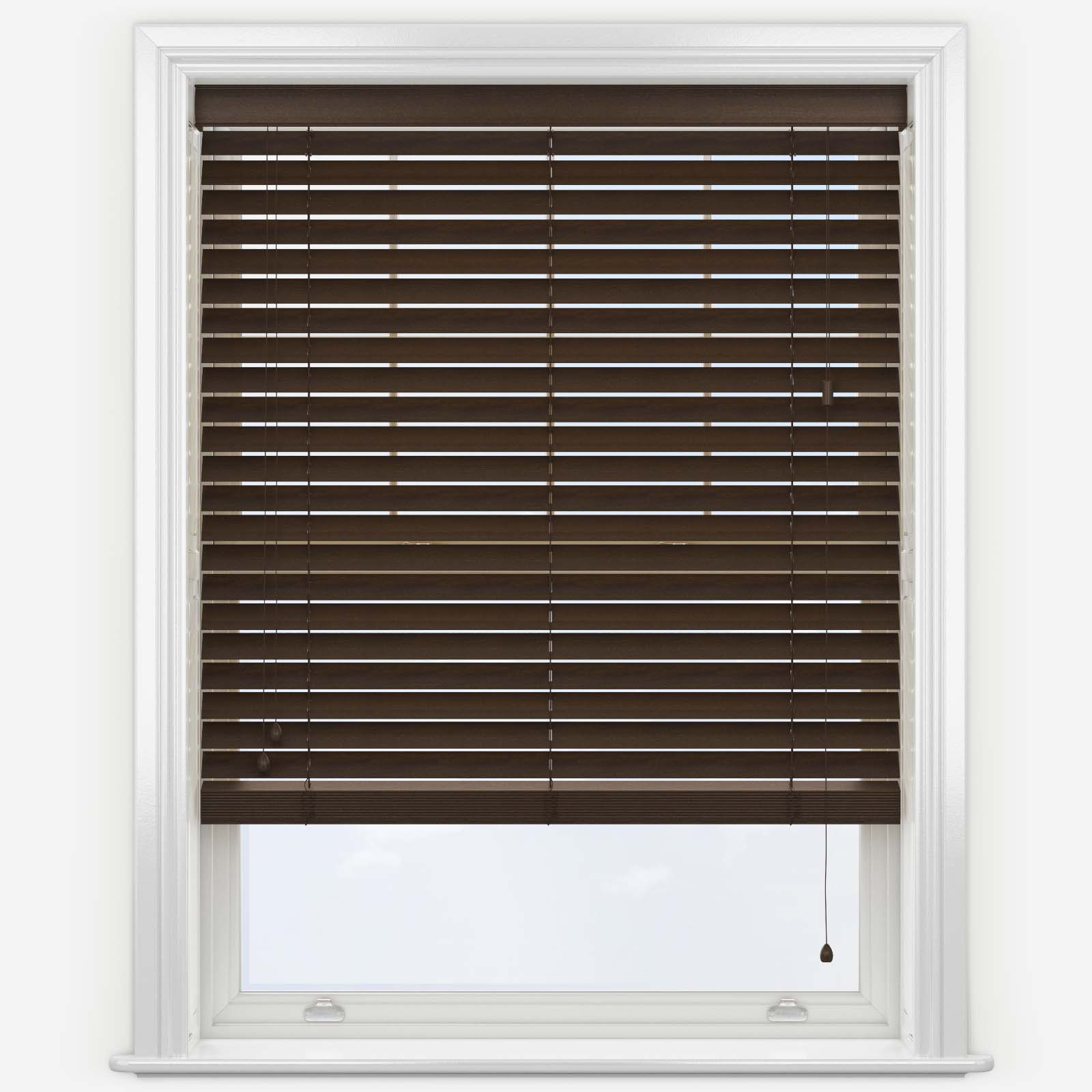 Transform your windows with the Premier Dark Walnut Wooden Venetian Blinds. The dark walnut colourway makes this blind is ideal for contemporary spaces. Crafted from 100% real wood, the Premier Dark Walnut Wooden Venetian Blind is a sustainable yet beautiful element to add into your home. To ensure you are fully satisfied with your purchase all our products come with a 5 year guarantee and are crafted to the highest quality, to provide our customers with only the best.