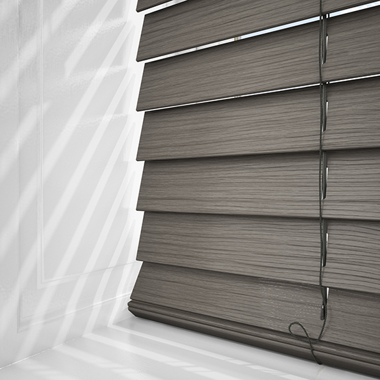 Add a contemporary twist to a classic style with this Touched by Design WoodLux Whisper Grey blind.