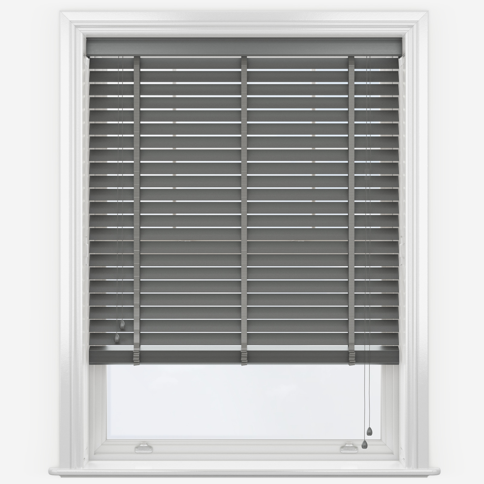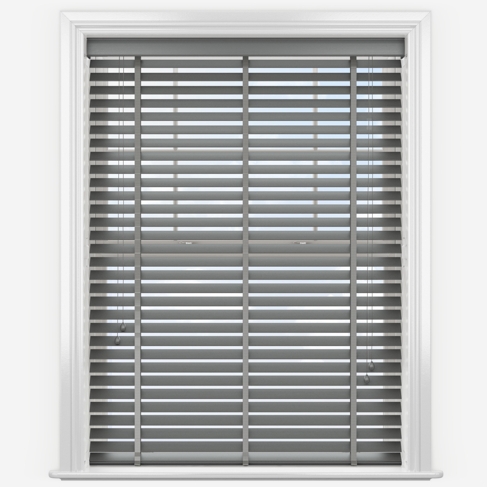 Offering a trending smoke grey tone and complementary tapes, this popular wooden blind provides a natural feel to your decor. From its sleek design and organic grain effect, this made to measure blind boasts elegance and sophistication. Stylish and modern, the Designer Dark Grey With Tapes Wooden Venetian Blind will complement a number of interior styles and colour schemes ranging from blush pinks to crisp whites.