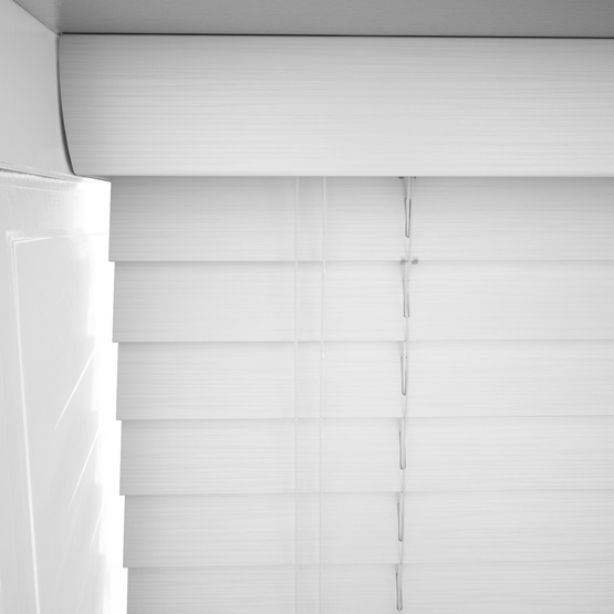 This stunning faux wood blind is certain to brighten up your home with its gorgeous white finish. Its sleek, sophisticated colour, along with the charming wood grain effect of its slats, truly make this made to measure Venetian blind a must-have. Timeless and versatile, combine with monochrome themes or blush pinks to really make a statement.