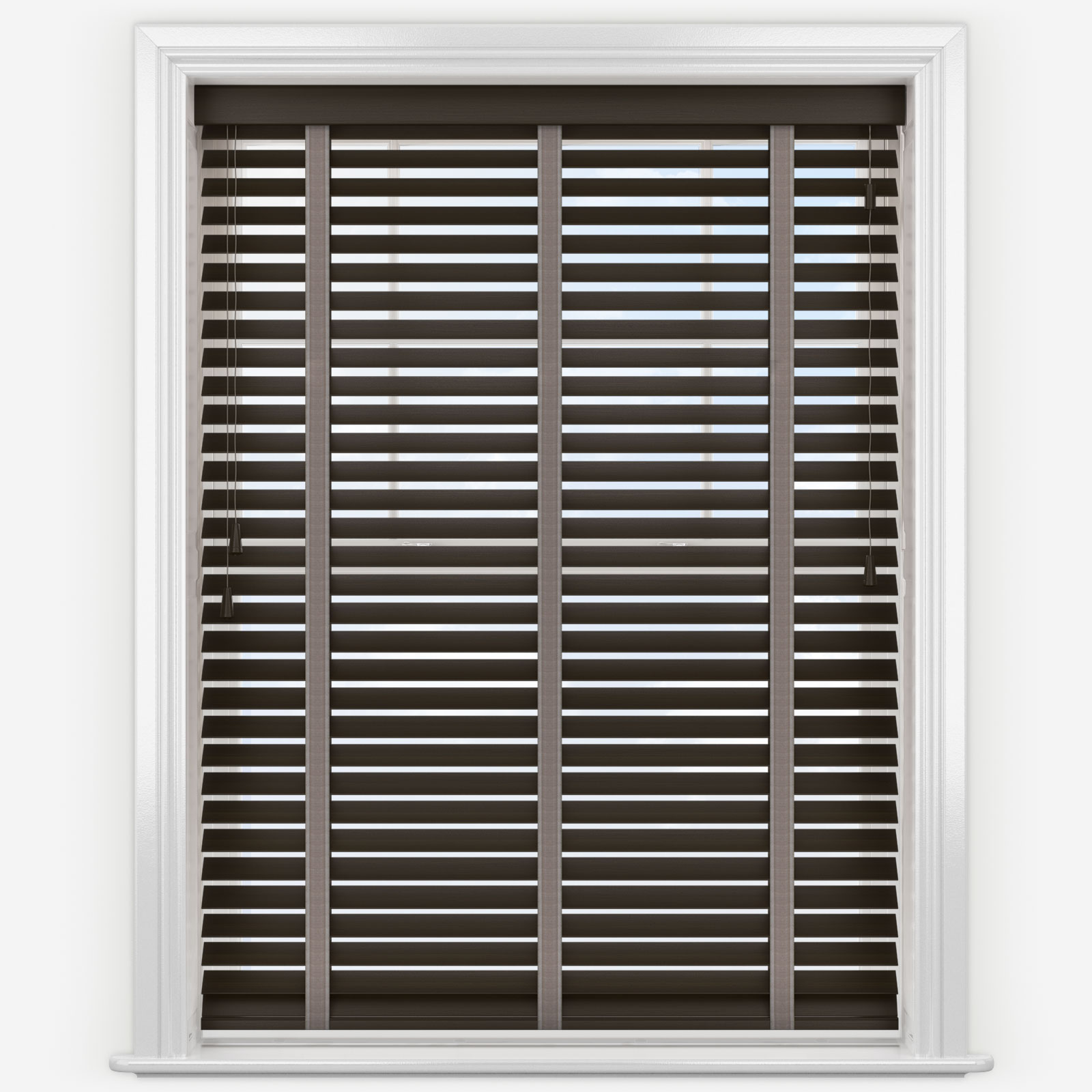 Make your windows look timeless with the Opulence Bamboo Walnut with Havanna Tapes Wooden Venetian Blind.