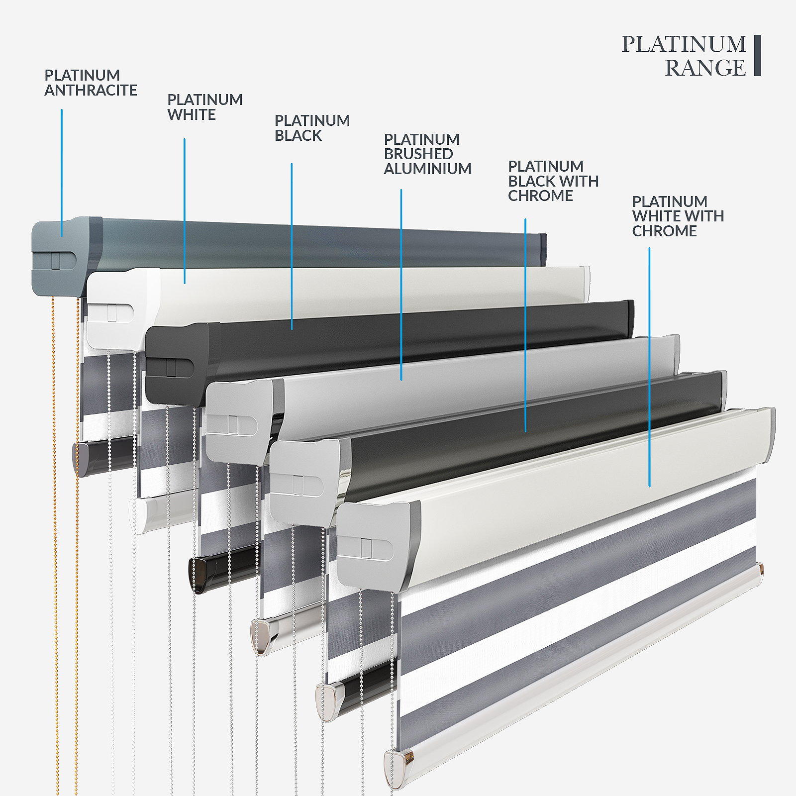 Touched By Design Nova Urban Grey Embrace the timeless elegance of classic day & night blinds or enhance your décor with our stylish upgrade options. The Designer style features a refined touch of your chosen fabric on the headrail and a sleek bottom bar, with three chic colour options to choose from. For a more luxurious option, the Platinum upgrade offers six hardware colours, providing a truly personalised finish. Whichever you choose, all options promise to bring a stylish and sophisticated touch to any room!
