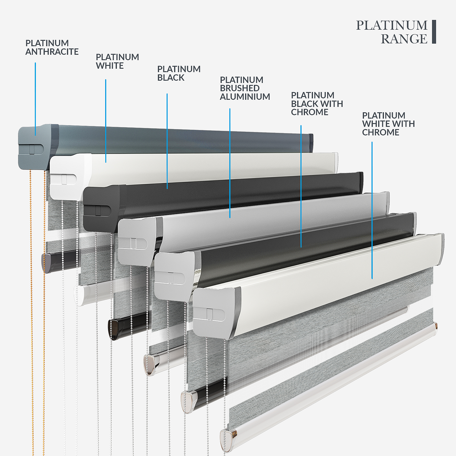Embrace the timeless elegance of classic day & night blinds or enhance your décor with our stylish upgrade options. The Designer style features a refined touch of your chosen fabric on the headrail and a sleek bottom bar, with three chic colour options to choose from. For a more luxurious option, the Platinum upgrade offers six hardware colours, providing a truly personalised finish. Whichever you choose, all options promise to bring a stylish and sophisticated touch to any room!