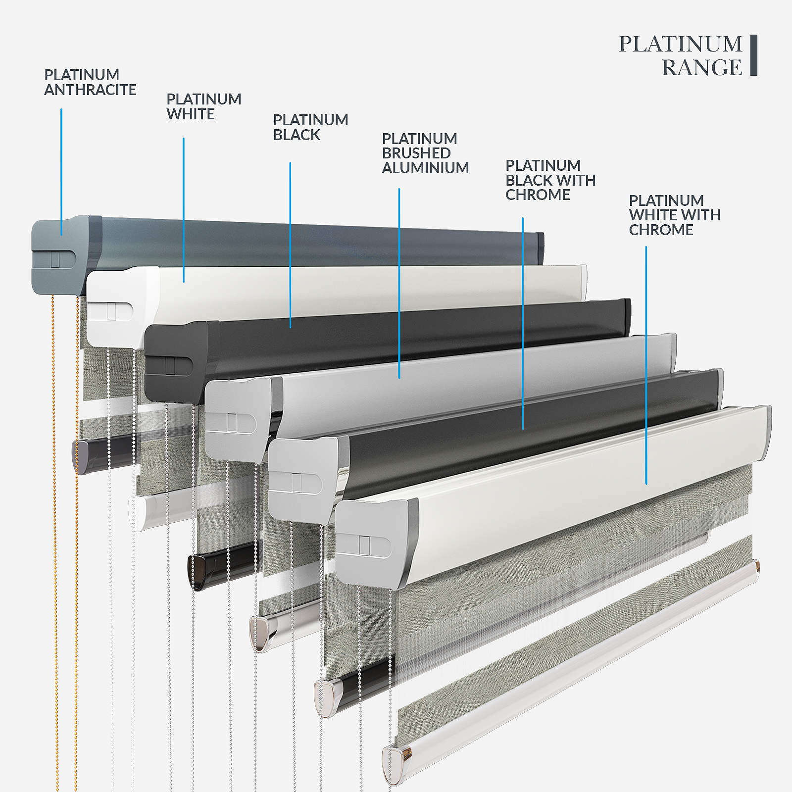 Embrace the timeless elegance of classic day & night blinds or enhance your décor with our stylish upgrade options. The Designer style features a refined touch of your chosen fabric on the headrail and a sleek bottom bar, with three chic colour options to choose from. For a more luxurious option, the Platinum upgrade offers six hardware colours, providing a truly personalised finish. Whichever you choose, all options promise to bring a stylish and sophisticated touch to any room!