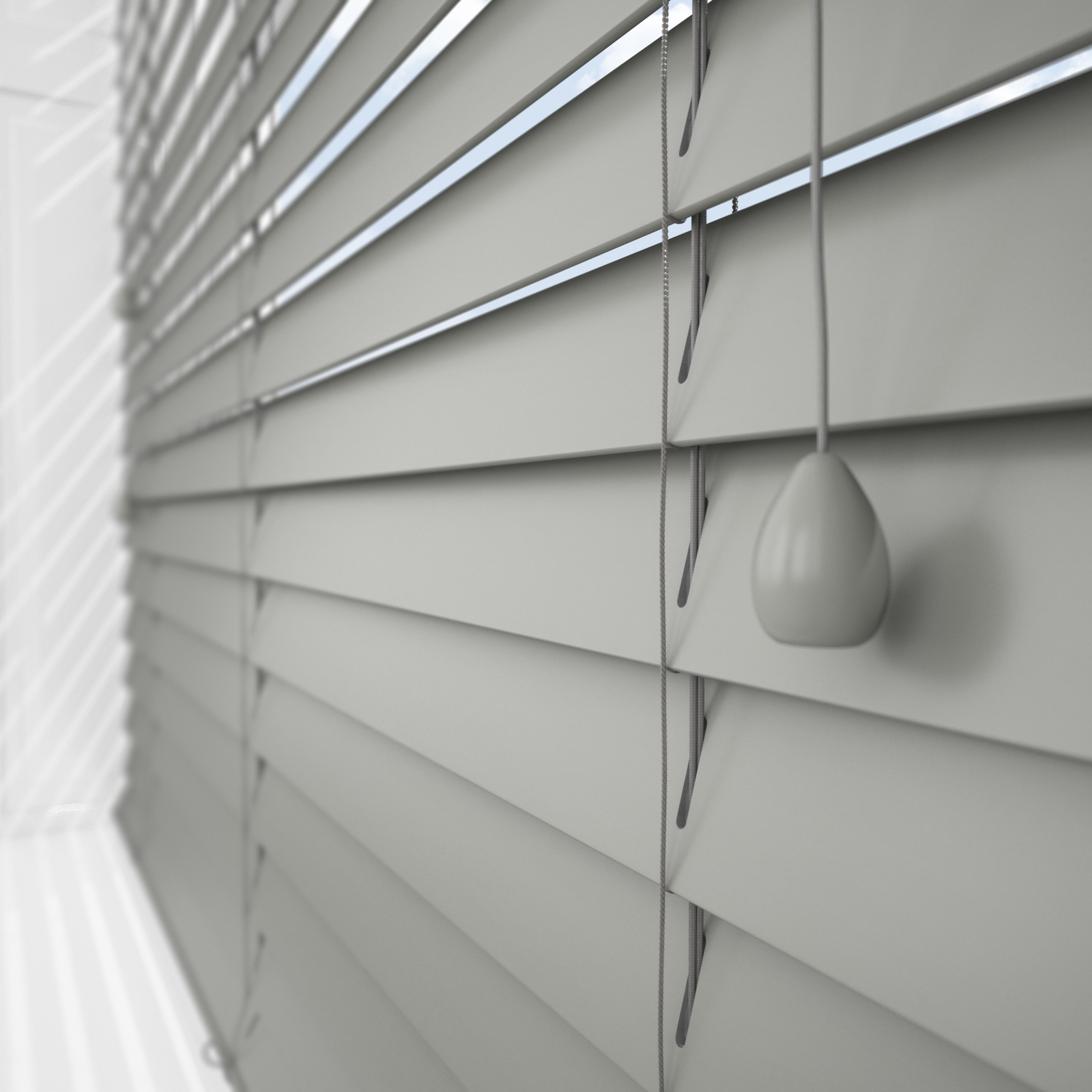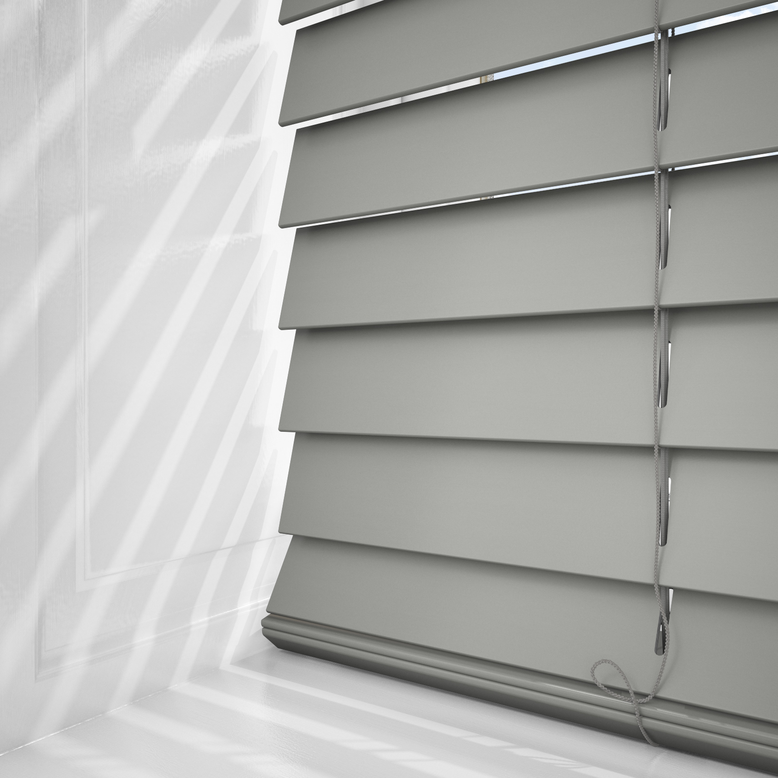 Finished in a warm contemporary grey and shaped with a subtle lip on the edge of each slat, this calming faux wood blind offers classic style with a modern twist. Equally at home in both rustic and minimalist decors.