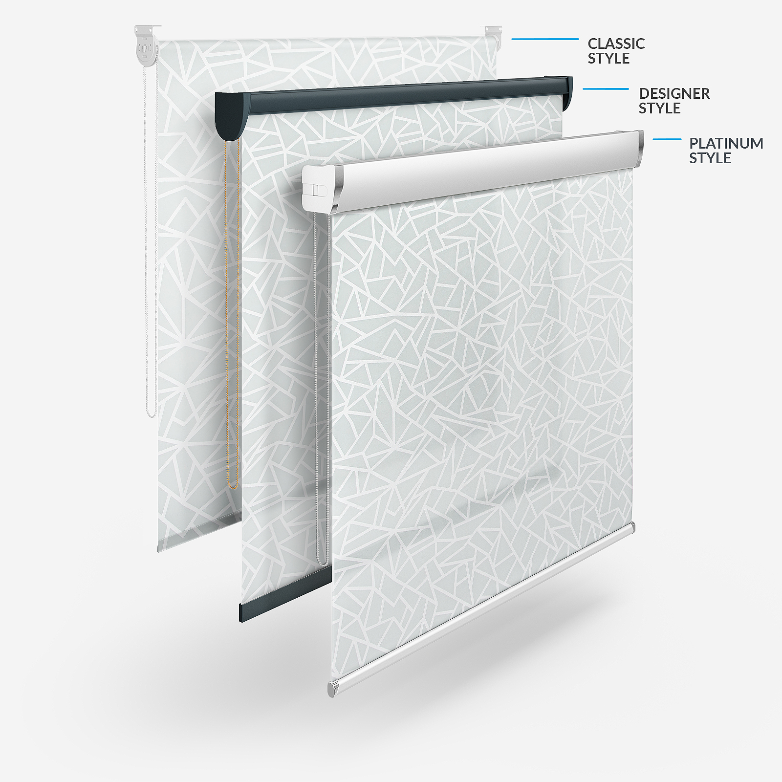 This light grey roller blind showcases an appealing geometric pattern, providing your room and your interior look with versatile style.