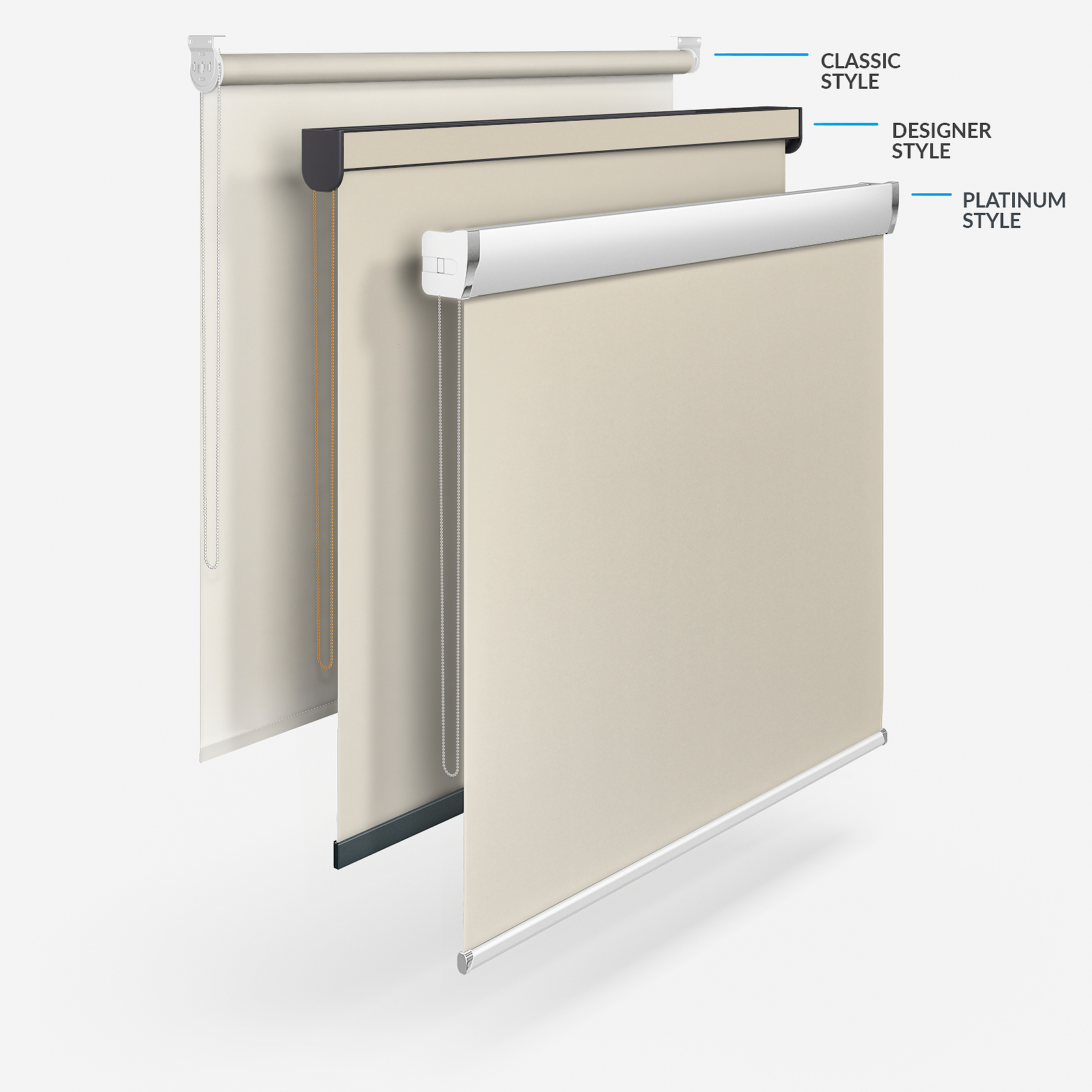 Bring sophisticated style to your windows with the AquaLuxe Linen PVC roller blind. A light, neutral-coloured PVC blind is a great option for many rooms in the home, particularly those that are prone to humidity, staining and messy fingerprints. Ideal for bathrooms, kitchens, utility rooms and kids' rooms, the AquaLuxe Linen features a strong PVC coating that offers moisture resistance and durability, with wipe clean properties that make cleaning a breeze. You'll also enjoy high levels of privacy and light control. Here at Blinds Direct, we hand-finish all products within our dedicated premises in West Yorkshire. Our team of experienced crafters use the best materials and manufacturing methods to ensure you love your blind for the long term. With Blinds Direct you can also enjoy different styles of roller blinds! There is the celebrated classic style, the Designer style which opens a range of customisation options including different coloured headrails and bottom bars, the easy to fit Designer No Drill and the stylish, sophisticated Platinum option. Each style creates a different effect that will help to maximise your home decor.