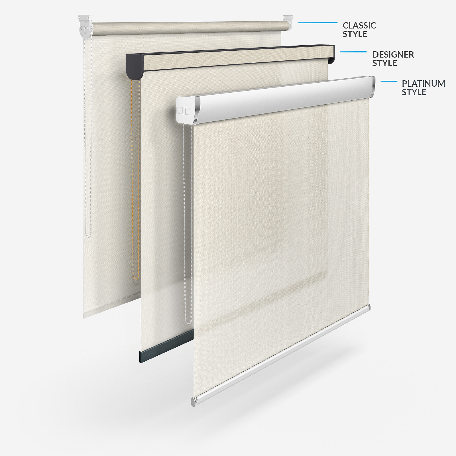 Create a friendly and peaceful space with this Deluxe Plain Cream Roller Blind. Part of our Touched By Design range, this roller blind lends a great deal of sophistication and refinement to both the home or workplace. Its warm and classic cream colour make this blind the perfect choice for your living room or bedroom. Crafted from the finest materials and components, this made to measure dimout blind will allow a subtle glow to fill your room while providing you with extra privacy. Easy to install and even easier to maintain this blind is guaranteed to stand the test of time. Here at Blinds Direct we manufacture our blinds by hand right here in West Yorkshire. Our trusted team put 100% into each interior furnishing they make to ensure that only the very best makes its way to you. Beyond the flexibility to have your blinds made to your exact specifications, you can also pick from four different styles! There is the time-tested Classic style, the fashionable Designer style that helps you maximise your chosen fabric in the headrail and the chic, sleek Platinum style. The fourth option is the Designer No Drill style. This combines the beauty of a Designer roller blind without the need for drills or screws!