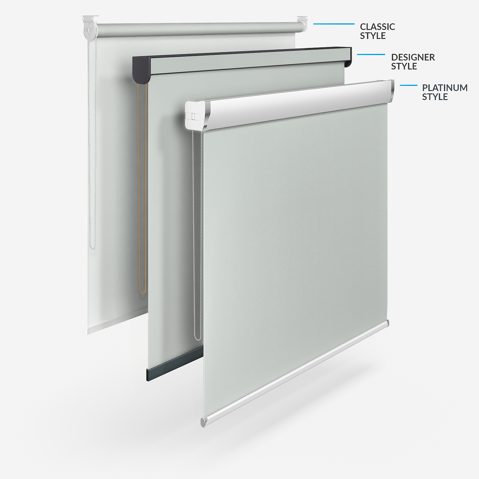 Enjoy style and functionality with the AquaLuxe Grey PVC roller blind. This light grey PVC blind is a great option for many areas of the home, especially those where sticky fingers might leave their mark! From the kitchen to the playroom, the AquaLuxe Grey blind is the perfect choice. With its innovative PVC coating, our AquaLuxe range boasts a number of benefits including water resistance and stain resistance. Easy to install, easy to use and easy to clean, the blinds are a practical choice for your home, as well as offering excellent light control and privacy levels. We take great pride in crafting our blinds to the highest standards. Using only the best fabrics and components, we make every blind to measure, guaranteeing a seamless fit and long term satisfaction for our customers. Beyond the flexibility to have your blinds made to your exact specifications, you can also pick from four different styles! There is the time-tested Classic style, the fashionable Designer style that helps you maximise your chosen fabric in the headrail and the chic, sleek Platinum style. The fourth option is the Designer No Drill style. This combines the beauty of a Designer roller blind without the need for drills or screws!