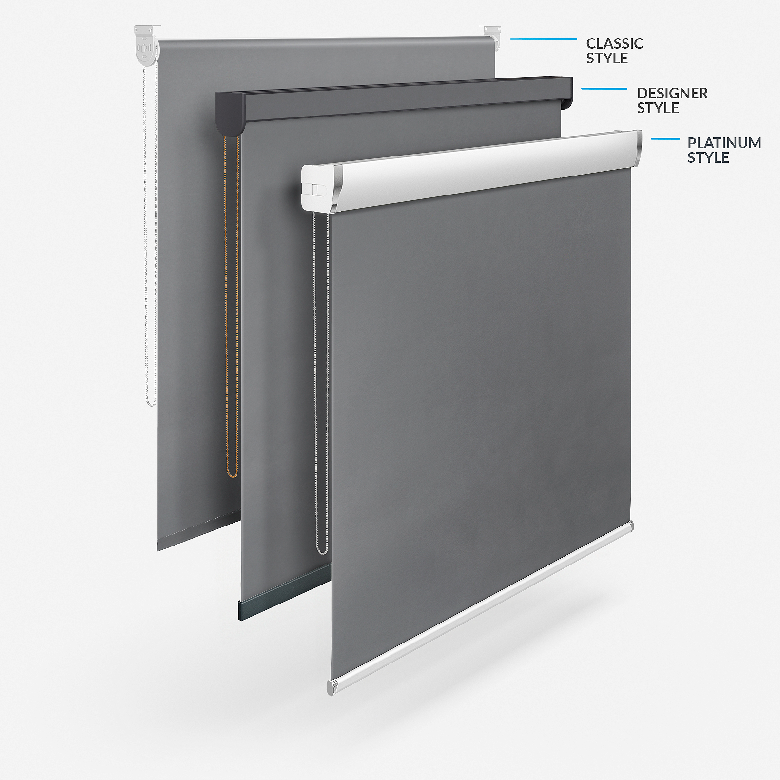With Blinds Direct you can also enjoy different styles of roller blinds! There is the celebrated classic style, the Designer style which opens a range of customisation options including different coloured headrails and bottom bars, the easy to fit Designer No Drill and the stylish, sophisticated Platinum option. Each style creates a different effect that will help to maximise your home decor.