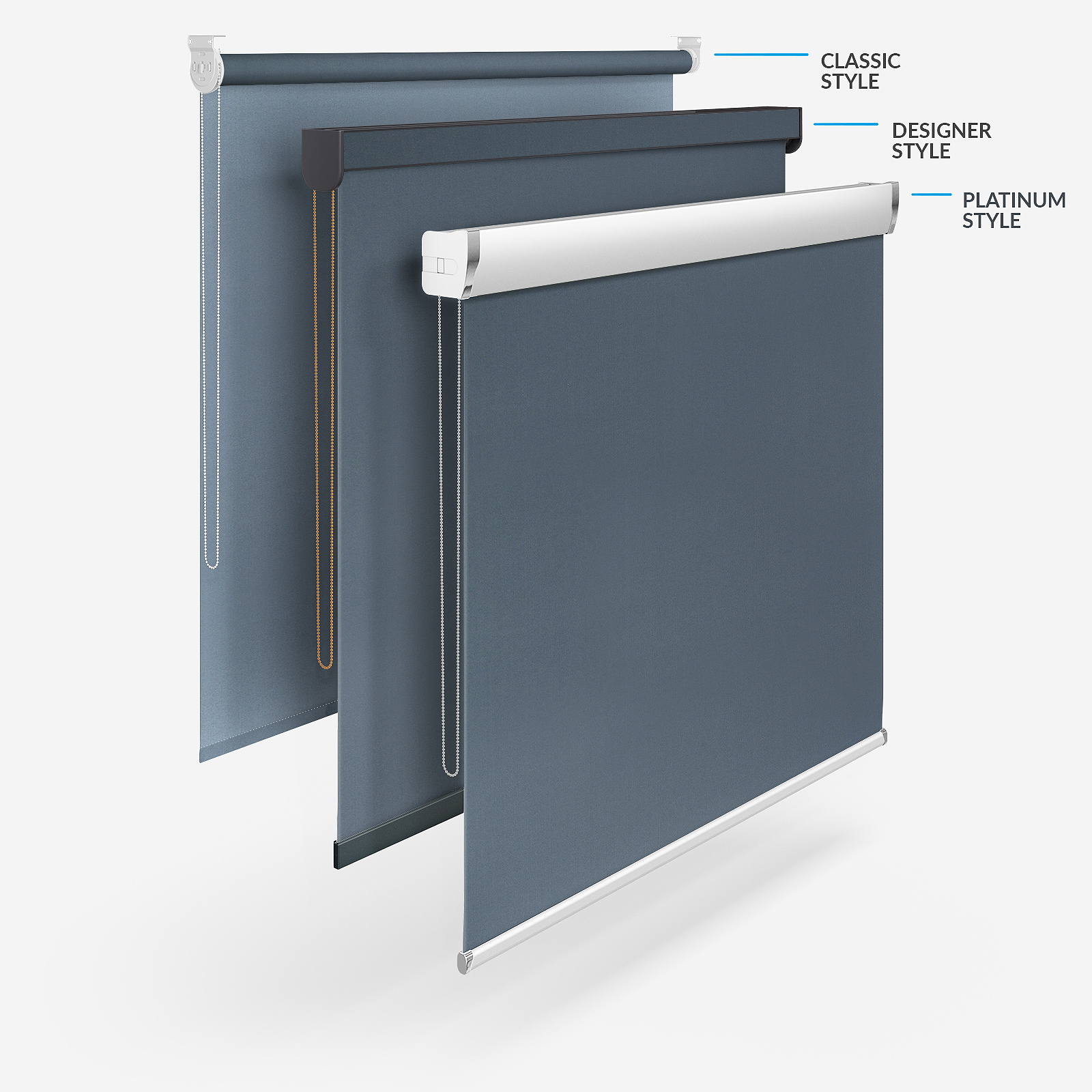 Add a cool presence to your interior with this Touched By Design Optima Blackout Midnight Blue roller blind. Toning well with a range of different interior schemes, this roller blind offers classic elegance with a modern twist, adding unlimited amounts of style to your interior along with excellent functionality. This midnight blue roller blind showcases an on-trend plain pattern, providing the style and quality to complete your room beautifully. At Blinds Direct your experience is our utmost priority. Our skilled production teams are UK based and work around the clock to handcraft the very best blinds and homeware products in the furnishings industry - as our attention to detail is truly second to none, you'll be guaranteed the best at all times. Beyond the flexibility to have your blinds made to your exact specifications, you can also pick from four different styles! There is the time-tested Classic style, the fashionable Designer style that helps you maximise your chosen fabric in the headrail and the chic, sleek Platinum style. The fourth option is the Designer No Drill style. This combines the beauty of a Designer roller blind without the need for drills or screws!