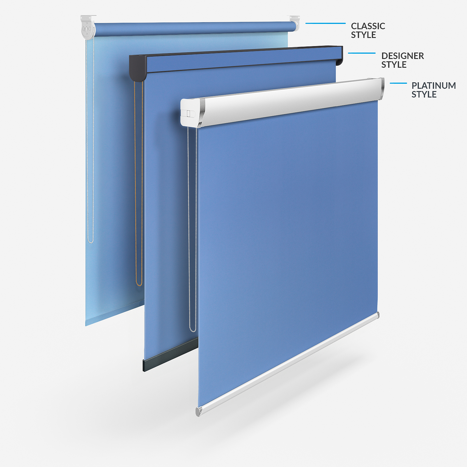 Enjoy functionality and fashion with the AquaLuxe Surf PVC roller blind. This vibrant blue PVC blind is a fabulous option for many rooms in your home, particularly those where sticky fingers often leave their mark. That's because our AquaLuxe blinds feature an exclusive PVC coating. Moisture resistant, stain resistant and extremely easy to clean, our PVC roller blinds are a practical choice for kitchens, bathrooms and playrooms alike. Your AquaLuxe Surf blind will also be simple to install, easy to use and offer durability for years to come. We take such great pride in hand-crafting our products to the highest standards. Using high quality materials and components, we make to measure every blind, then put it through a rigorous quality control process to ensure long term quality and durability. Beyond the flexibility to have your blinds made to your exact specifications, you can also pick from four different styles! There is the time-tested Classic style, the fashionable Designer style that helps you maximise your chosen fabric in the headrail and the chic, sleek Platinum style. The fourth option is the Designer No Drill style. This combines the beauty of a Designer roller blind without the need for drills or screws!