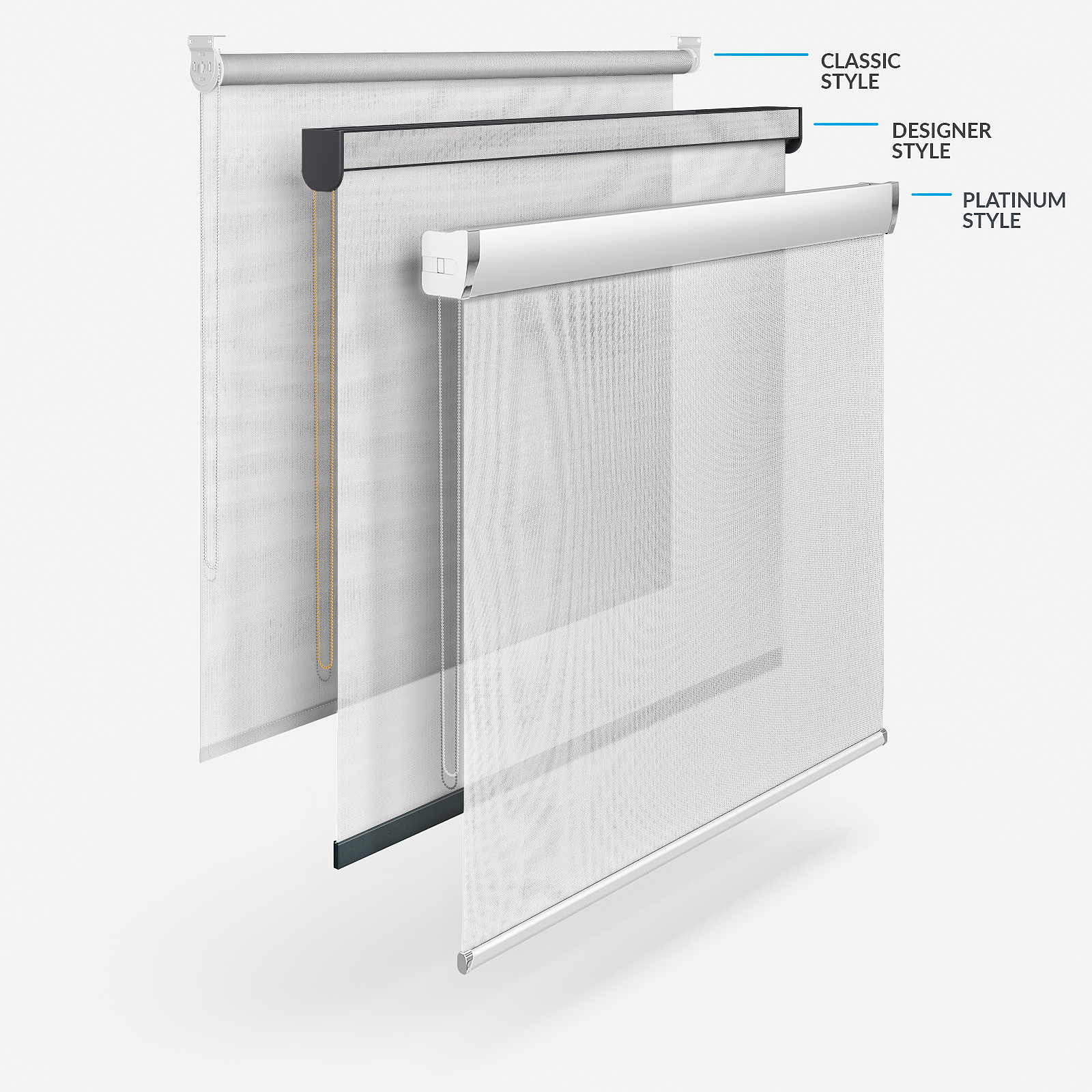 With Blinds Direct you can also enjoy different styles of roller blinds! There is the celebrated classic style, the Designer style which opens a range of customisation options including different coloured headrails and bottom bars, the easy to fit Designer No Drill and the stylish, sophisticated Platinum option. Each style creates a different effect that will help to maximise your home decor.