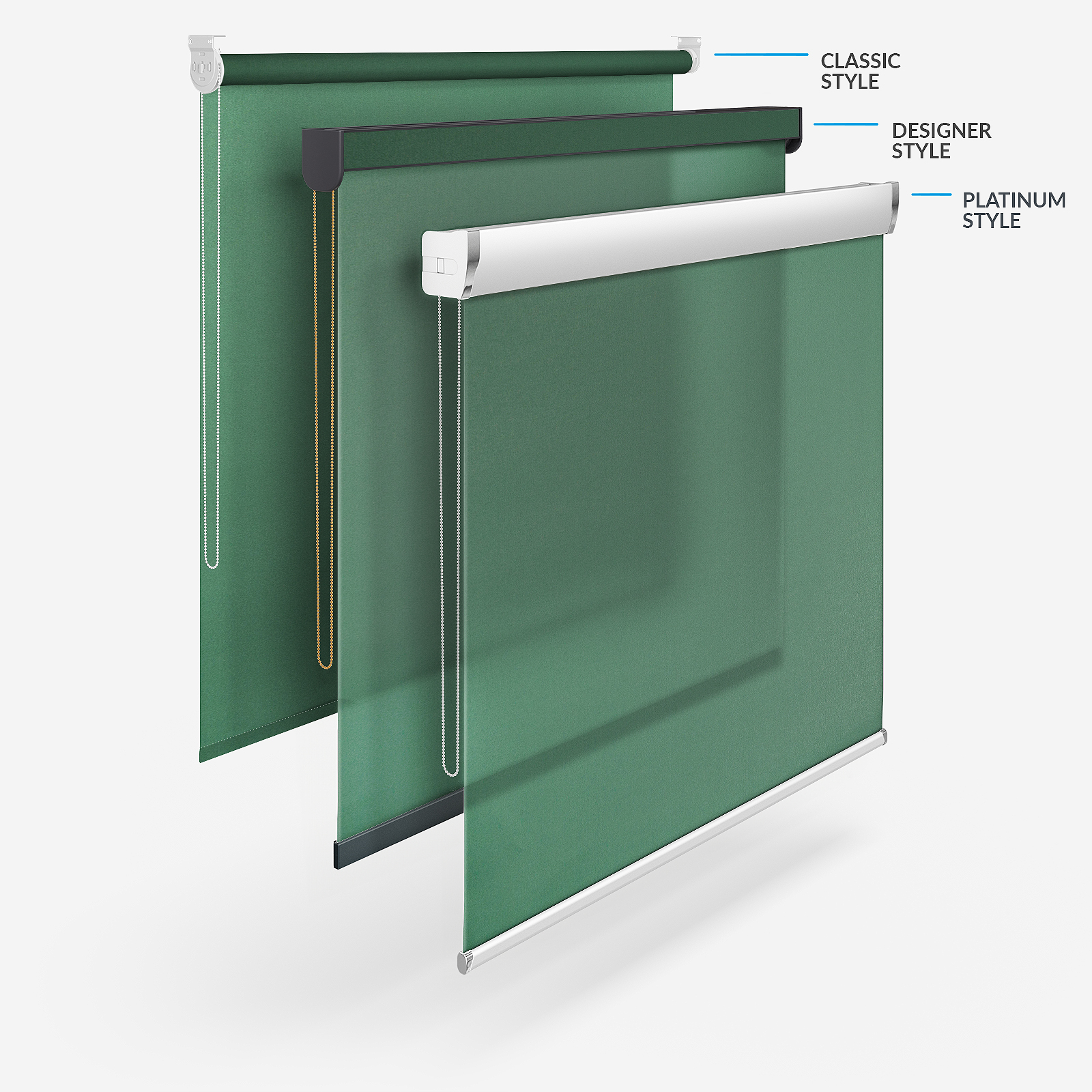 Add a cool presence to your interior with this Touched By Design Optima Dimout Hunter Green roller blind. Control the light, improve thermal efficiency and ensure you and your family get the privacy you need with this high quality roller blind. Along with these practical advantages, it also looks incredibly sleek and smart. This hunter green roller blind showcases an appealing plain pattern, providing your room and your interior look with versatile style. Each product is handmade to your exact requirements, right here in Wakefield, West Yorkshire. Our dedicated team at Blinds Direct put 100% love and attention into every interior furnishing they make, so we can guarantee that only the very best will make its way to you. With Blinds Direct you can also enjoy different styles of roller blinds! There is the celebrated classic style, the Designer style which opens a range of customisation options including different coloured headrails and bottom bars, the easy to fit Designer No Drill and the stylish, sophisticated Platinum option. Each style creates a different effect that will help to maximise your home decor.