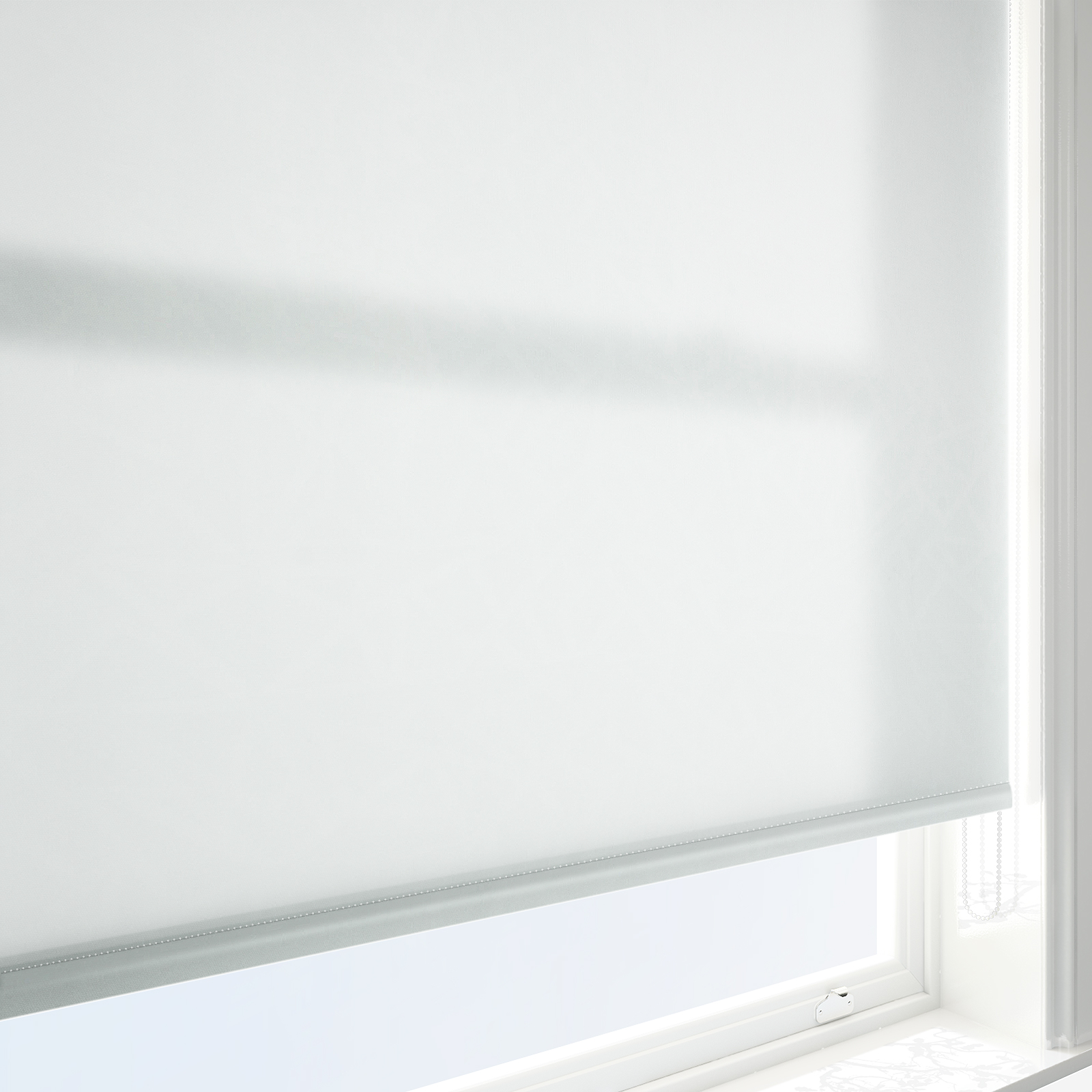 Create an interesting and dynamic decor with this Touched By Design Format White roller blind.