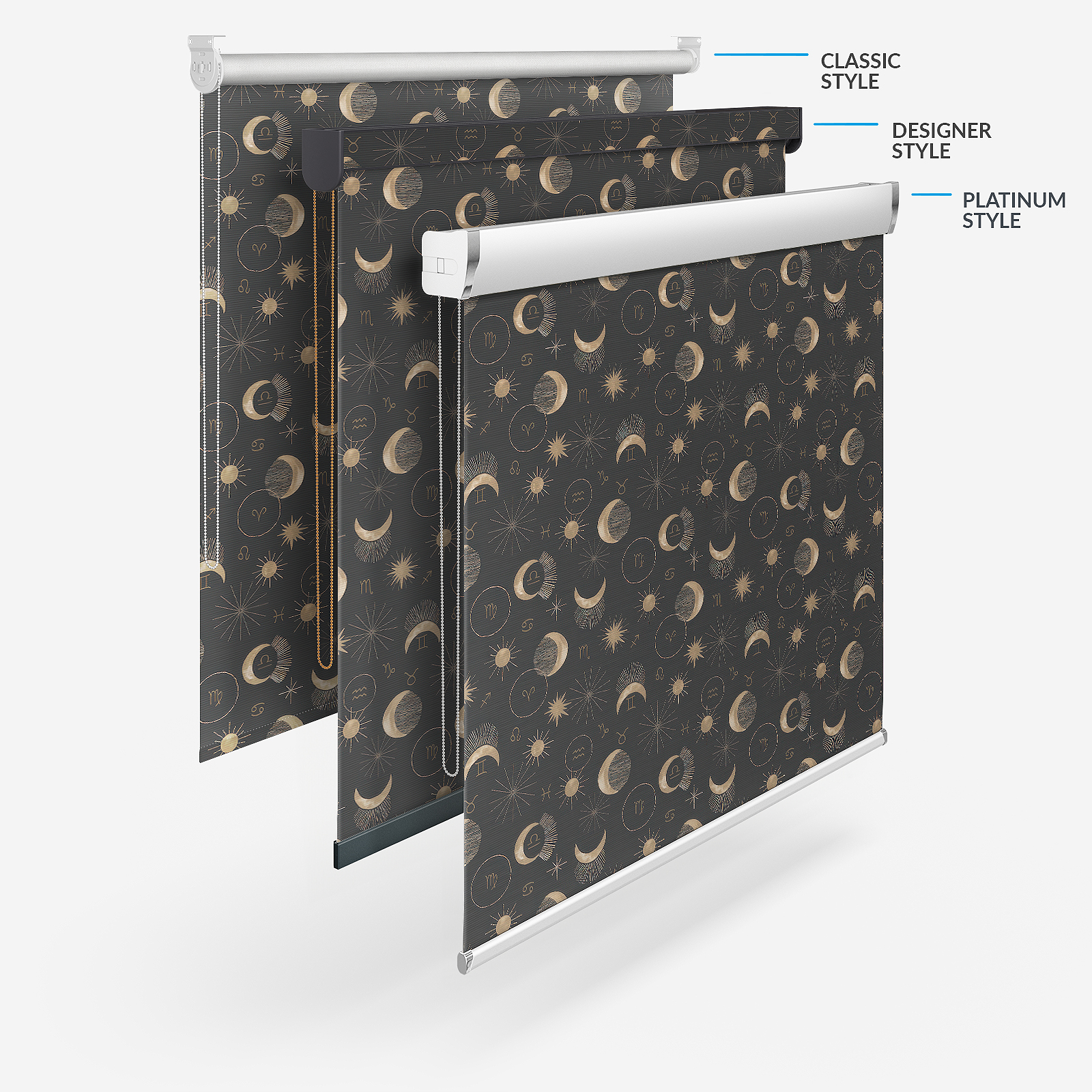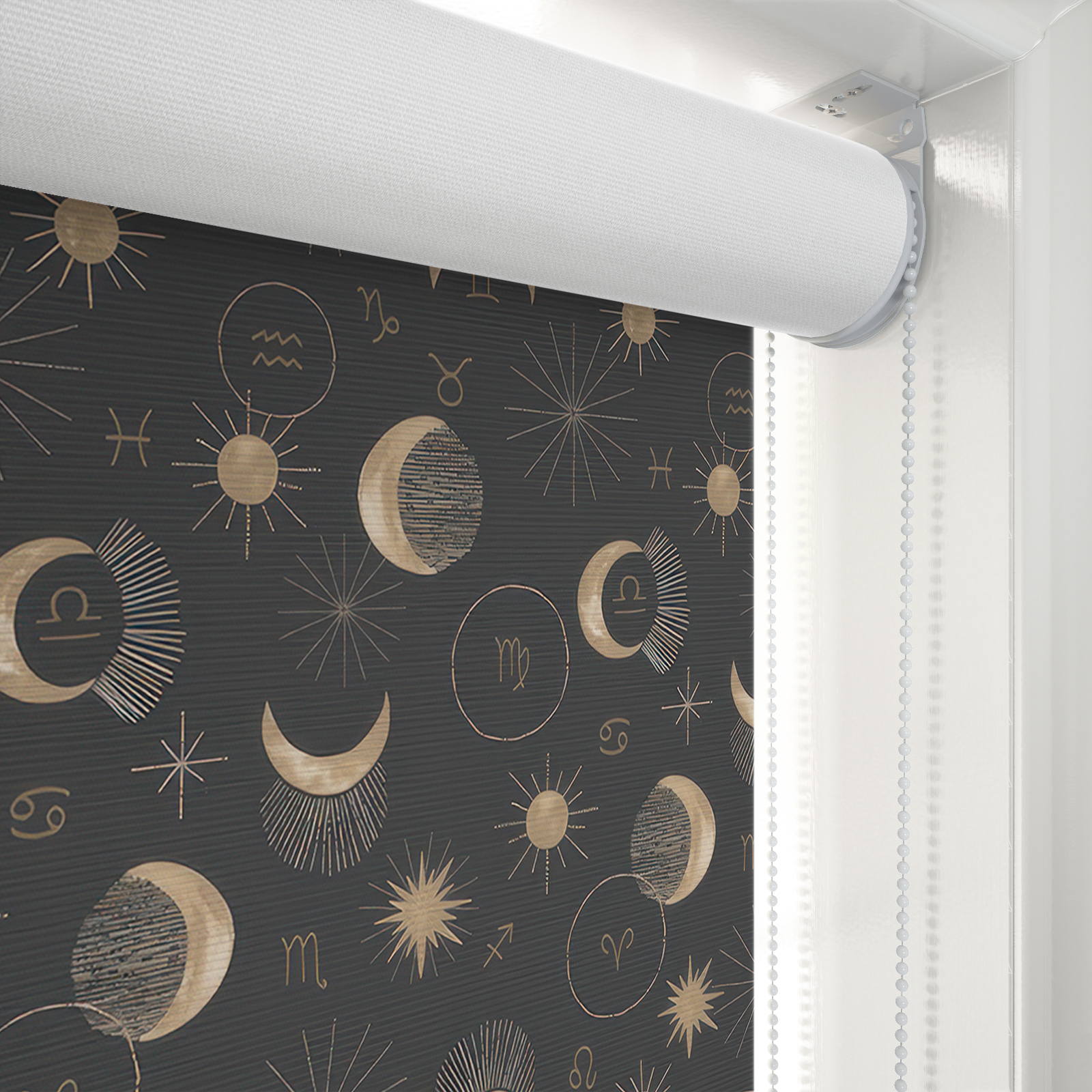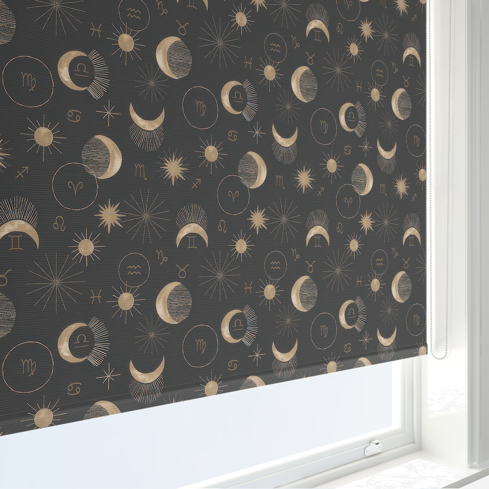 Bring playfulness to your interior with this Sonova Studio Astrology Dusk Black roller blind. Enjoy light control, privacy, thermal efficiency and easy maintenance with this high quality roller blind. As well as its practical advantages, this window dressing brings style and elegance to your space. Bring the excitement of a dusk black childrens pattern design into your home with this Sonova Studio Astrology Dusk Black, dressing your room with style. We are so proud to manufacture every item from our factory in the heart of Yorkshire. Here, our talented team of crafters are committed to producing the highest quality furnishings that are sure to stand the test of time.