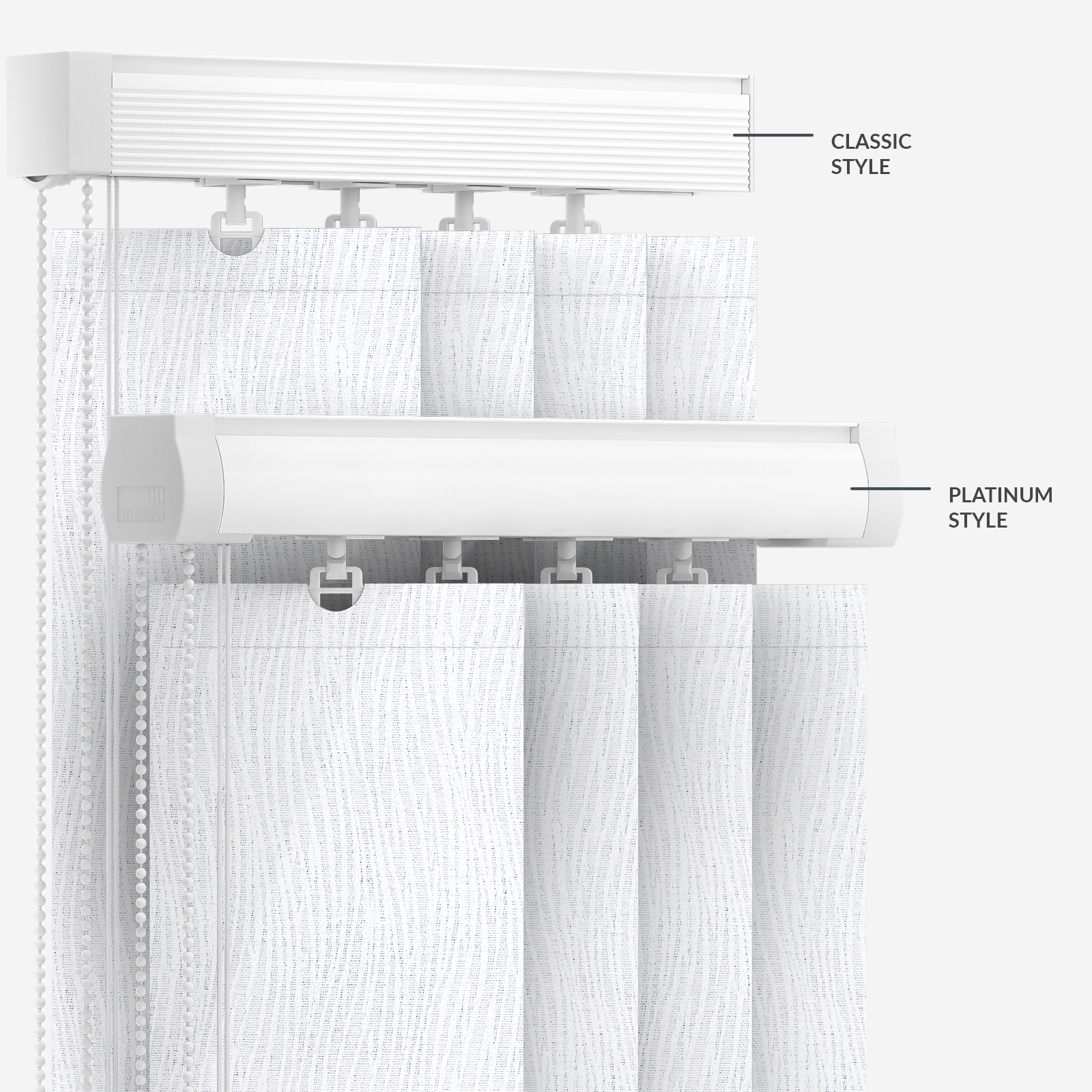 Enjoy the sophistication of a white vertical blind, featuring an up to date patterned pattern that adds interest and depth.