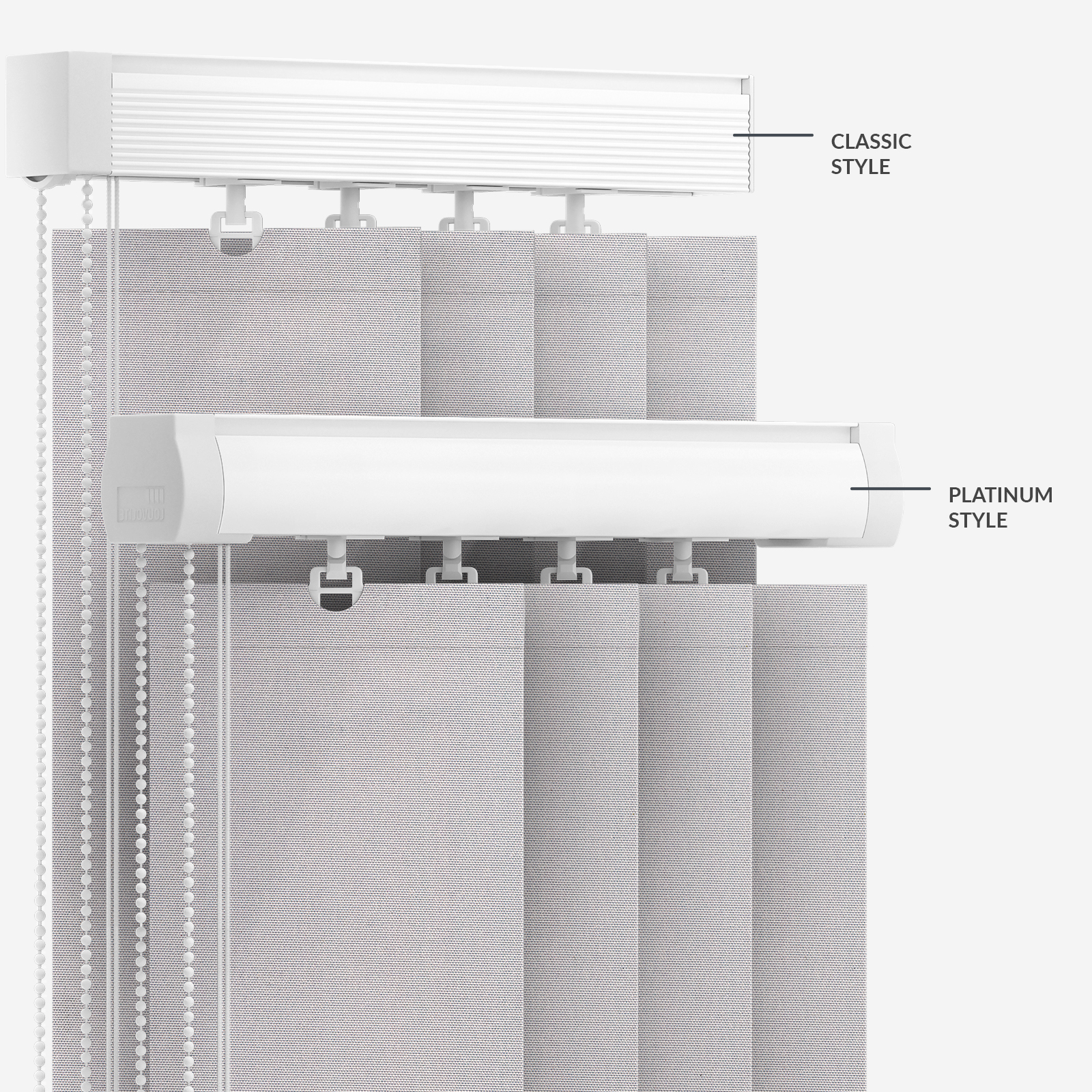 Add a neutral style with this Touched by Design Supreme Blackout Pebble Grey blind. Made from a strong blackout fabric, this blind is the ideal solution for busy homes and offices. It can easily withstand the stresses of every day use while providing a sophisticated look. With its long flowing slats, this blind is an elegant addition to any window. More than just a sophisticated look, this vertical blind gives you full control over the light coming into your home. We make and manufacture to your specific sizes and requirements. We offer the UK's widest selection of blinds and with our generous free sample service, you can order up to eight free swatches to help you make the best decision.