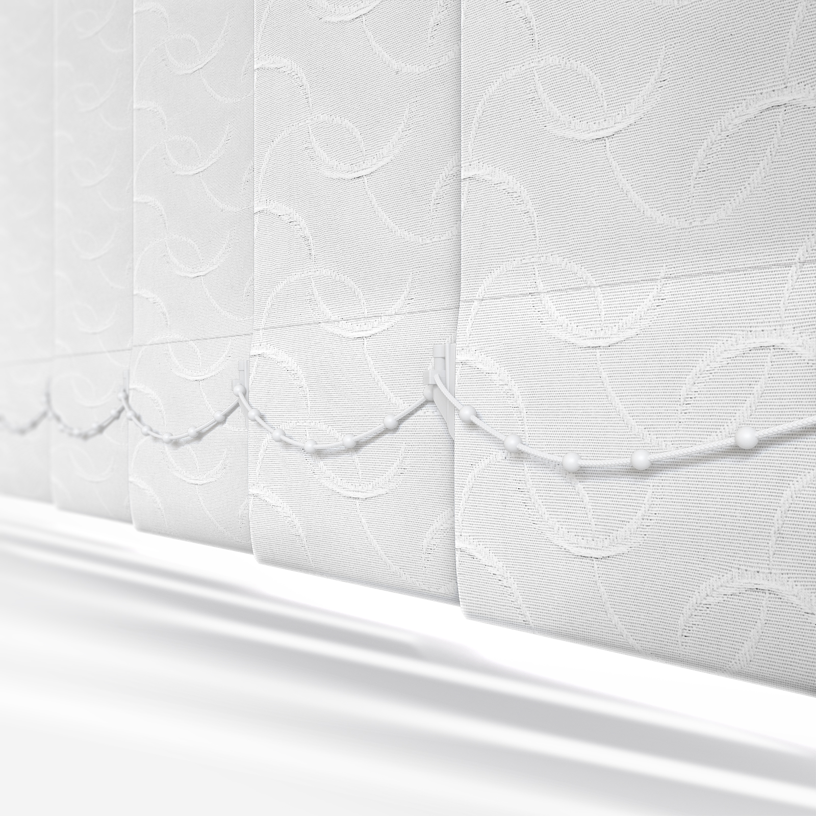For a sleek and elegant window display, look to this Badar Snow Vertical Blind.