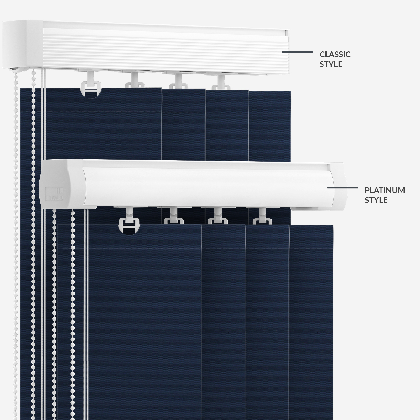 Add a natural style to your home with this Louvolite Carnival Blackout Navy vertical blind. Bringing chicness to your windows and the rest of your room, this vertical blind is the perfect option to achieve a contemporary look to your interirors. There are also a number of practical advantages, such as light control, privacy and durability. With its eye-catching plain pattern and timeless navy tones, this popular vertical blind will frame your interior with style. At Blinds Direct your experience is our utmost priority. Our skilled production teams are UK based and work around the clock to handcraft the very best blinds and homeware products in the furnishings industry - as our attention to detail is truly second to none, you'll be guaranteed the best at all times