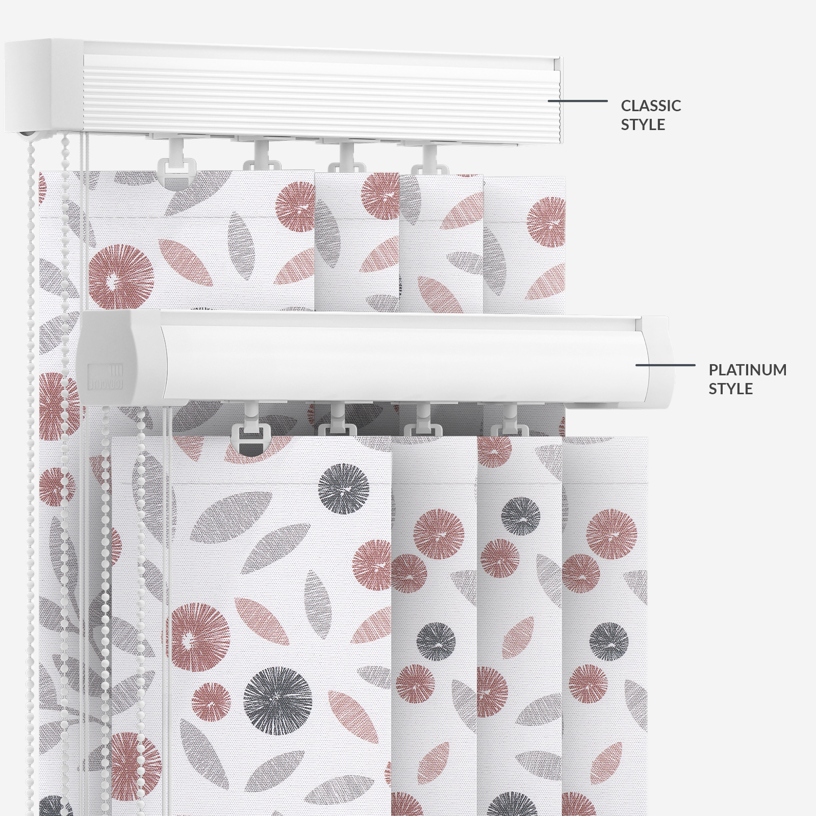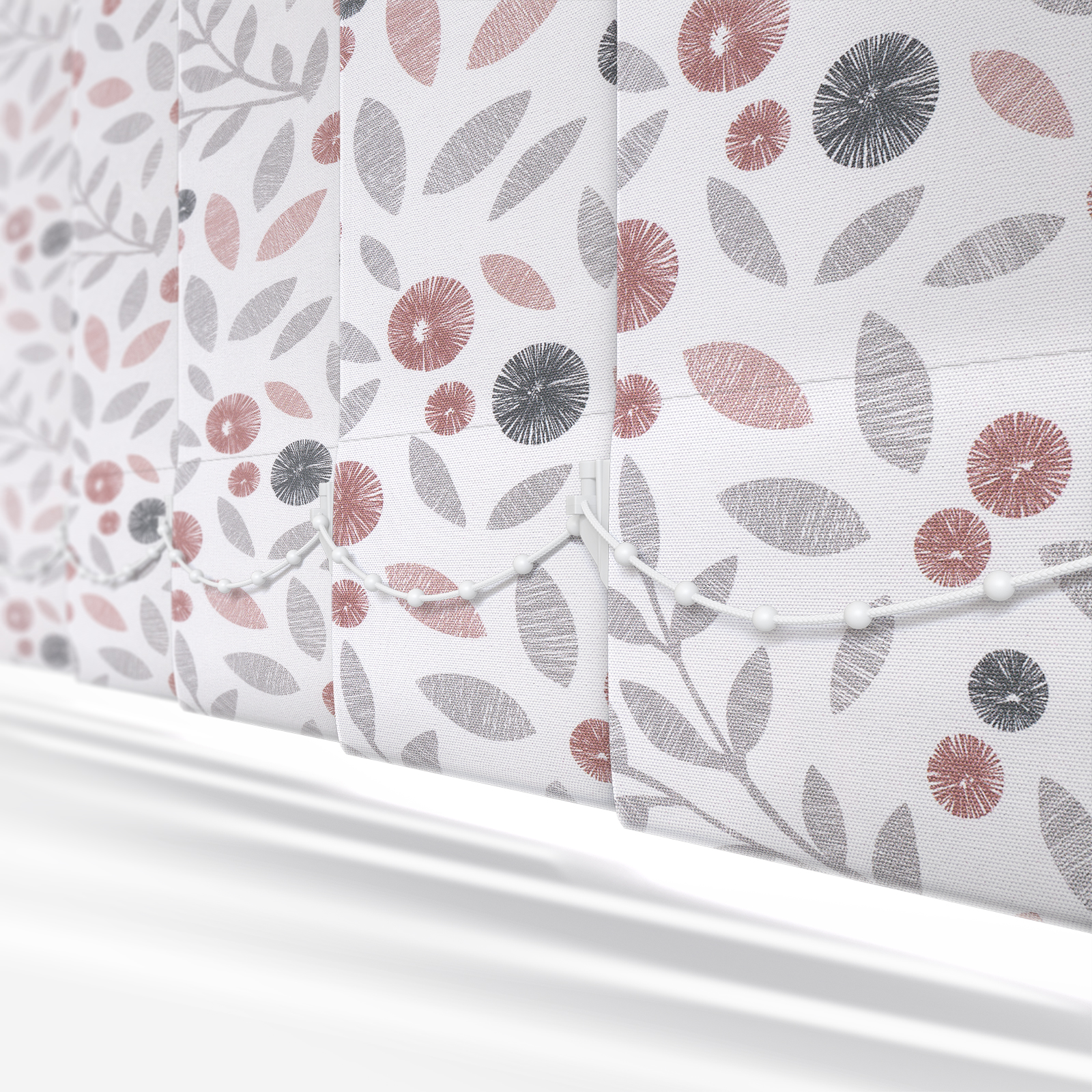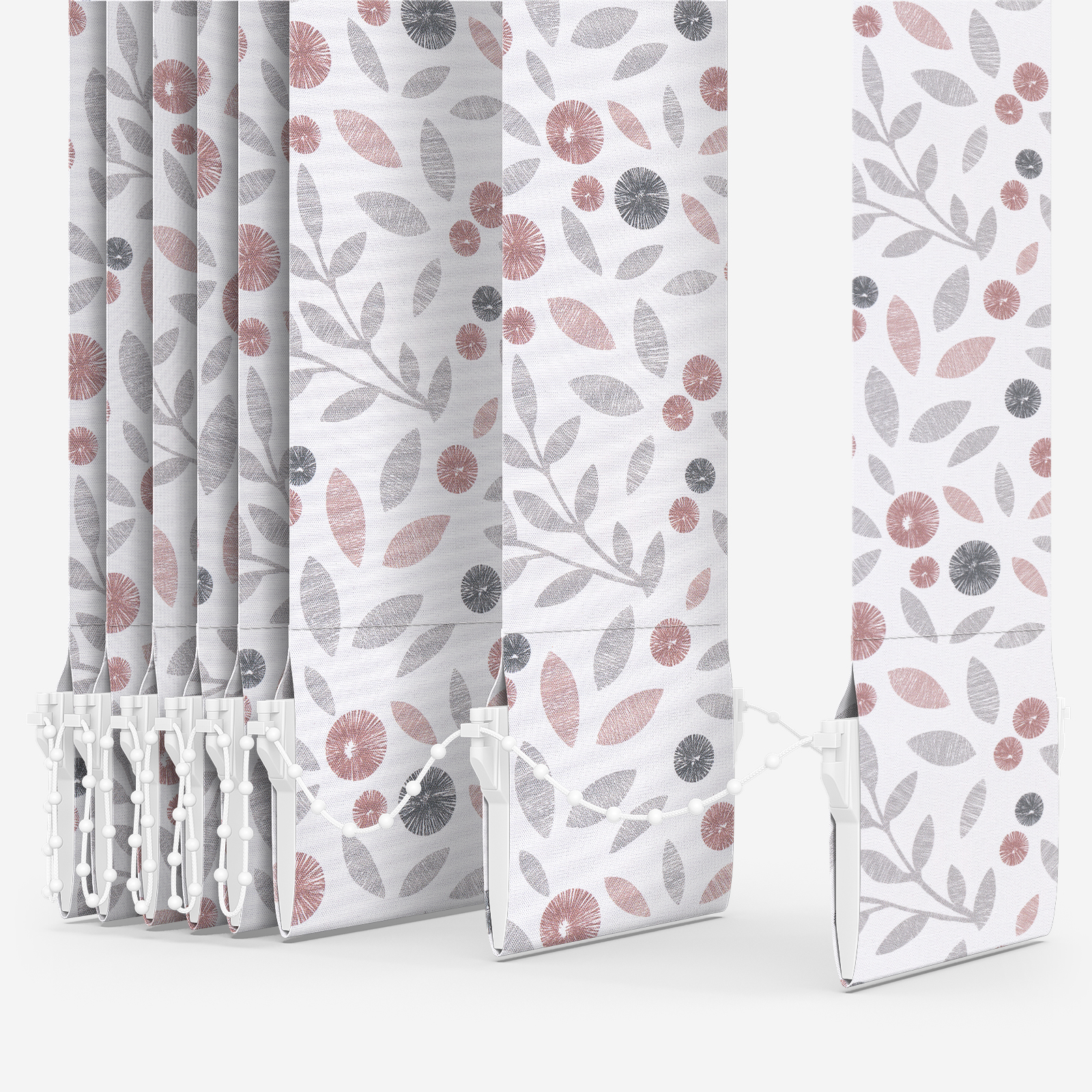 Be confident with this Louvolite Cotton Flower Blush vertical blind.