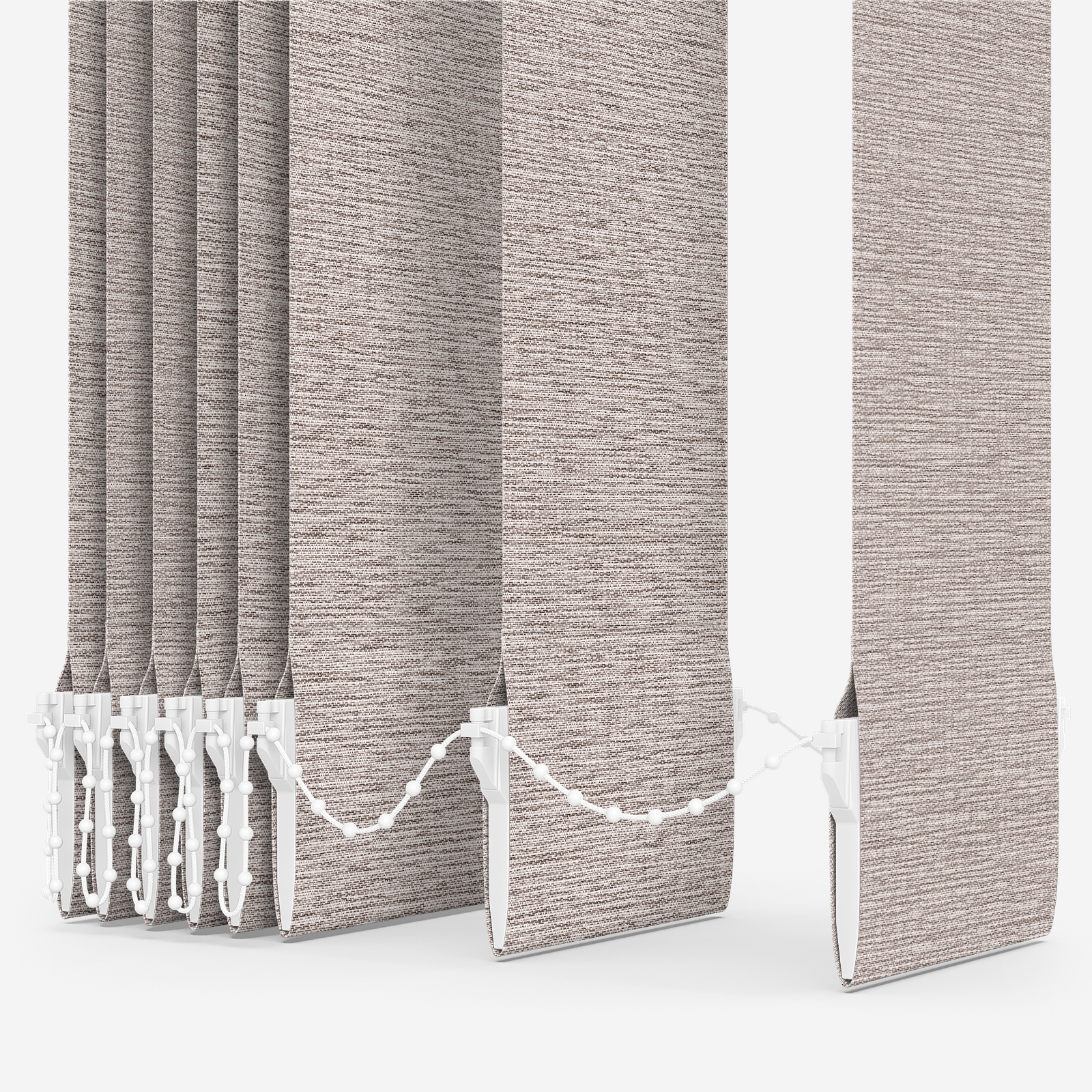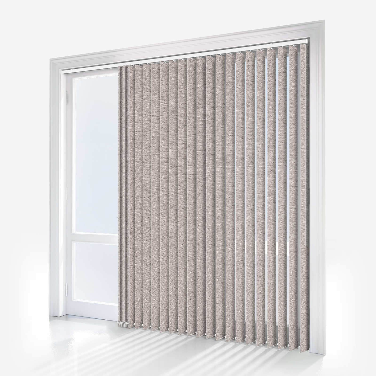 This linen vertical blind showcases an appealing plain pattern, providing your room and your interior look with versatile style.