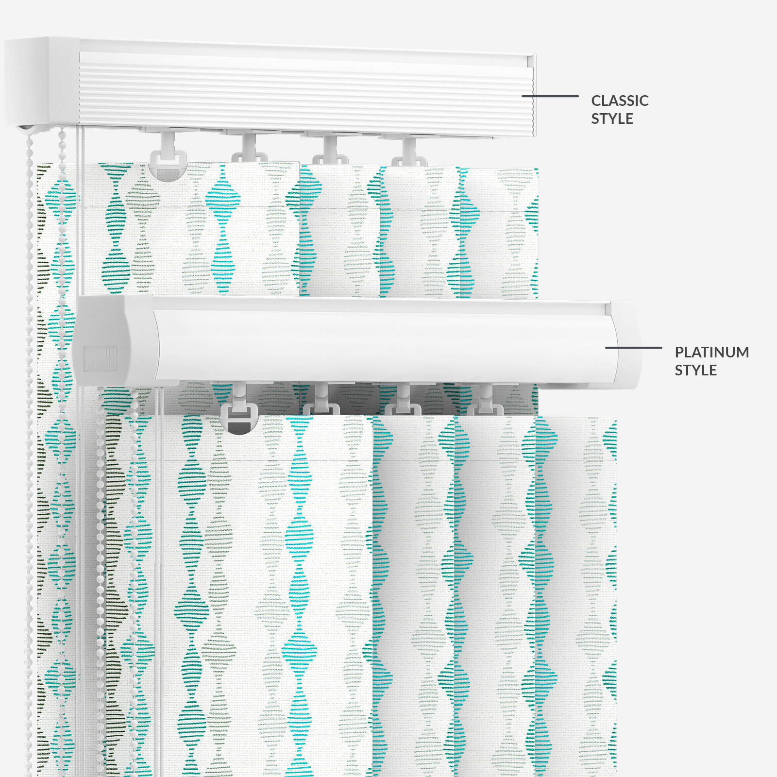 Add a delicate touch to your room with this Arena Romain Turquoise vertical blind.