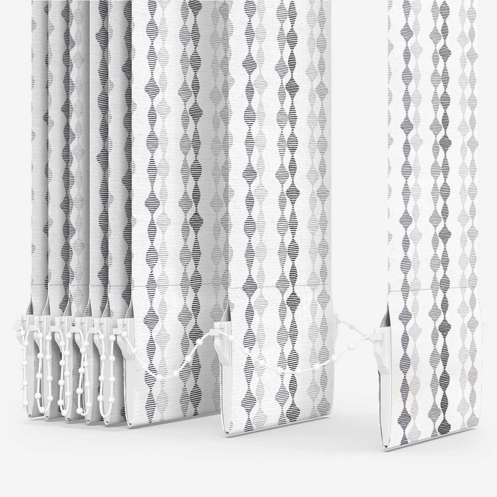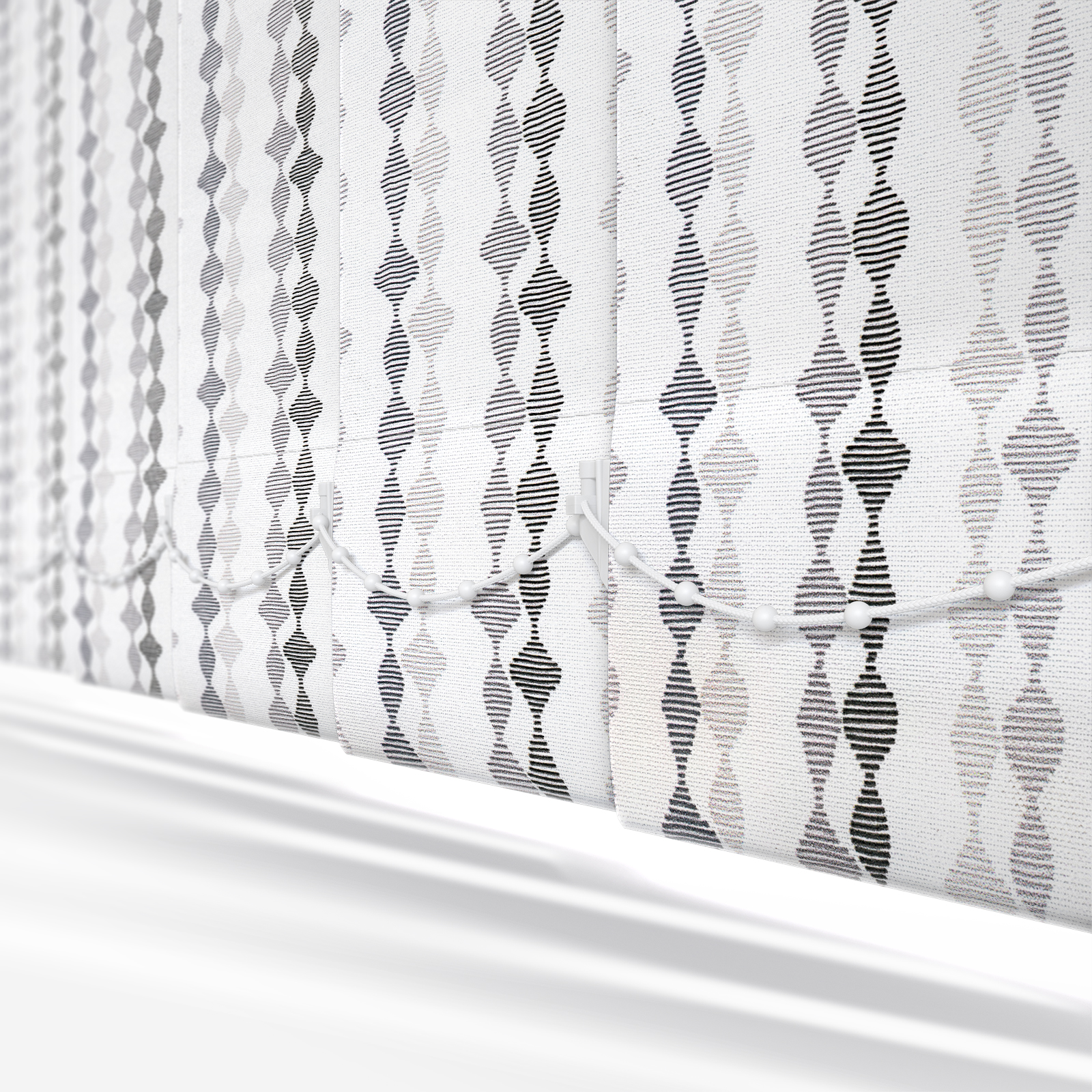 This shadow vertical blind features a stylish patterned design, bringing interest to your home and adding a finishing touch to your decor.