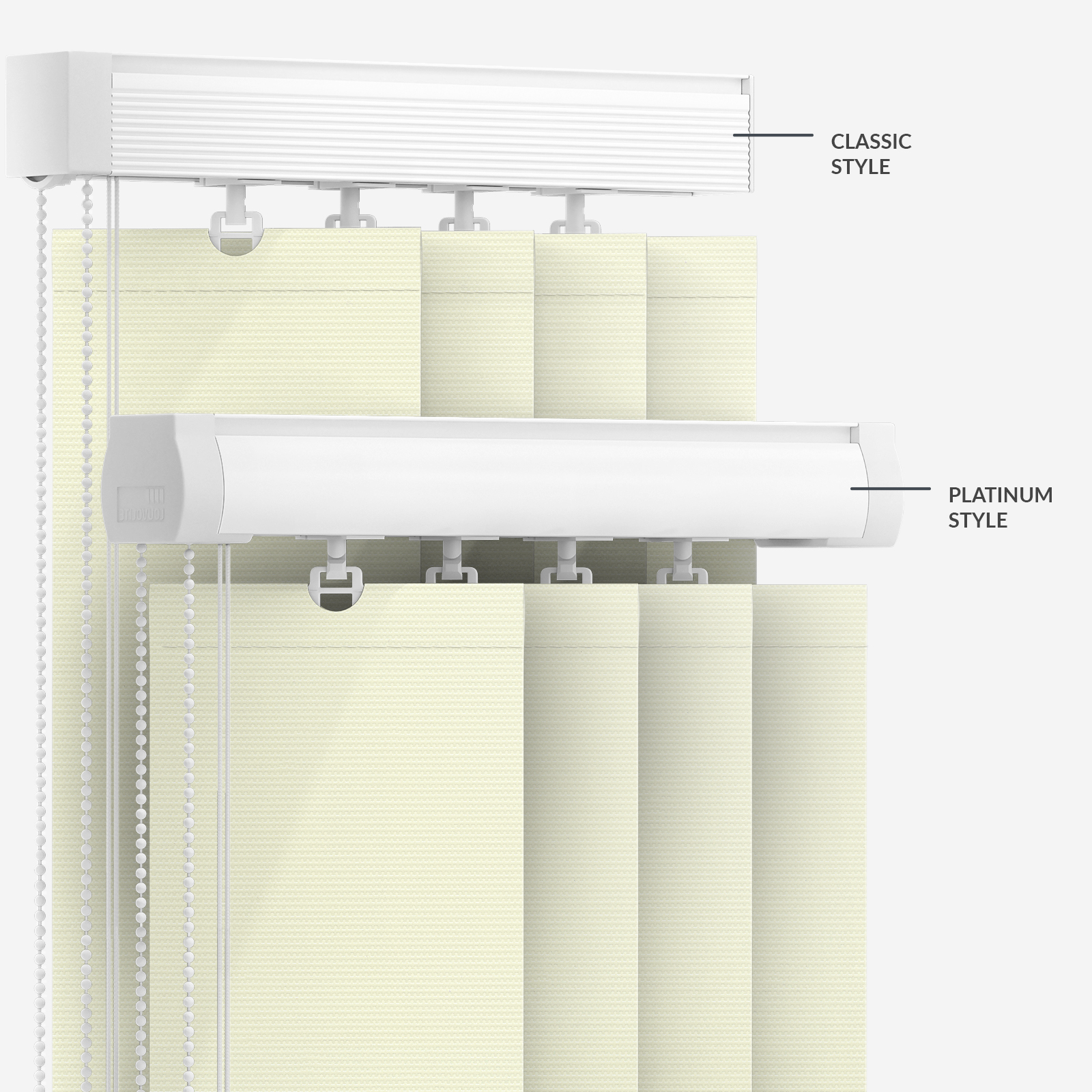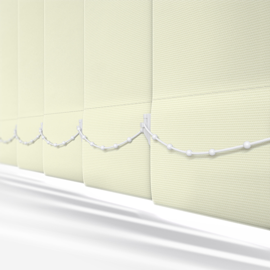 Bring warmth to your windows with this Aqualuxe Butter Vertical Blind. With its delicate neutral cream hue, this PVC vertical blind lends to a variety of rooms in the house, pairing with many different interior styles and colour schemes. Perfect for any space in the house that has high humidity, as well as those prone to mess and dirty fingers, the Aqualuxe PVC coating offers moisture resistant and stain resistance. Each to clean and maintain, this blind is a timeless choice. Each blind is hand crafted in our trusted facility in Huddersfield West Yorkshire. Crafted using only the finest materials and components, so you can rest easy when ordering from Blinds Direct.
