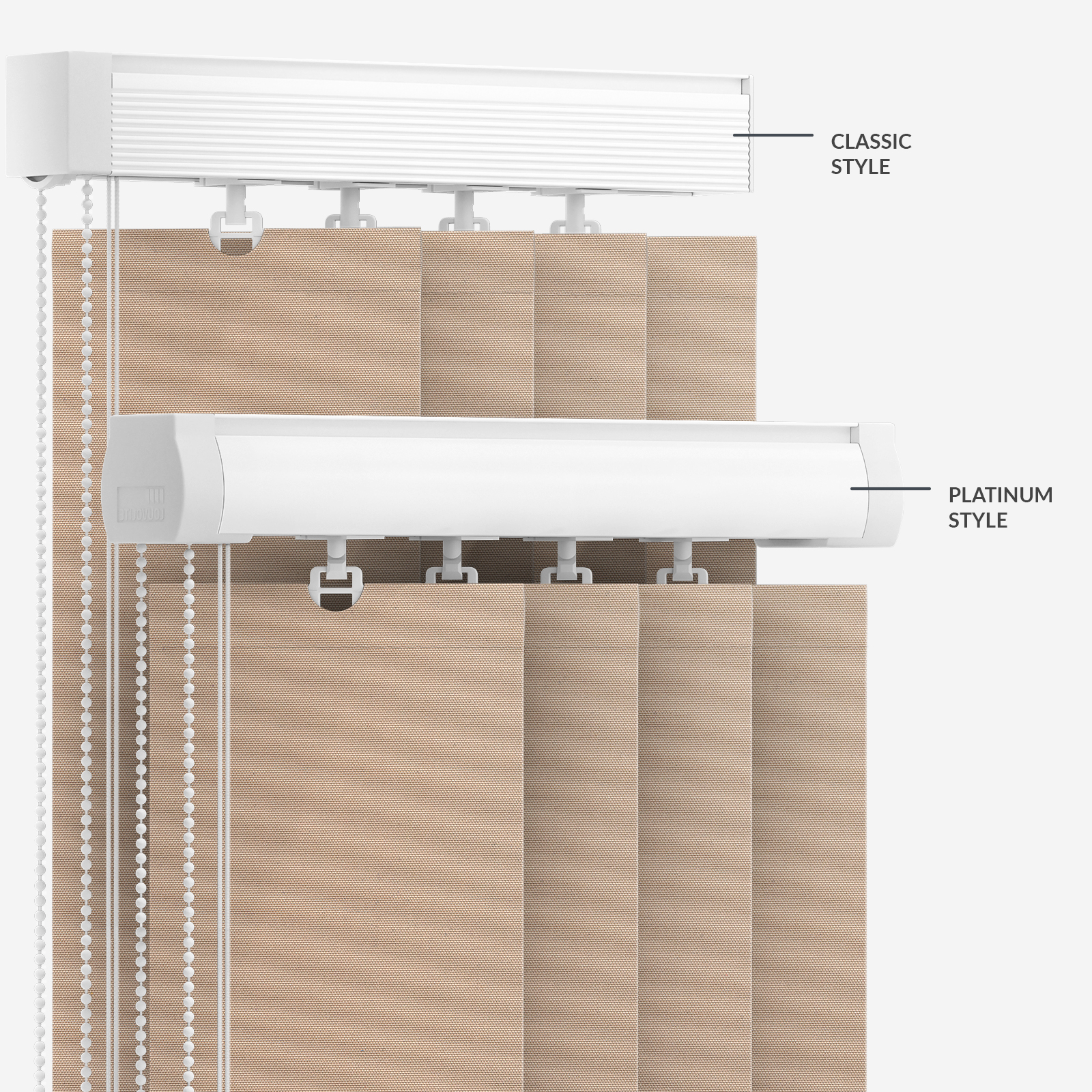 Make the most of a neutral tone with this Touched by Design Deluxe Plain Sand blind. This specially designed fabric has been created to keep out as much light as possible as well as allowing you to shut out the outside world. Your home should be your sanctuary, and this blind makes that possible. Vertical blinds offer a stylish solution for your windows. With its long slats this vertical blind allows you to fully control the light coming into your home. We even take the stress out of installation with our simple fitting instructions, provided with this product, so just enter your window measurements and leave the work to us.