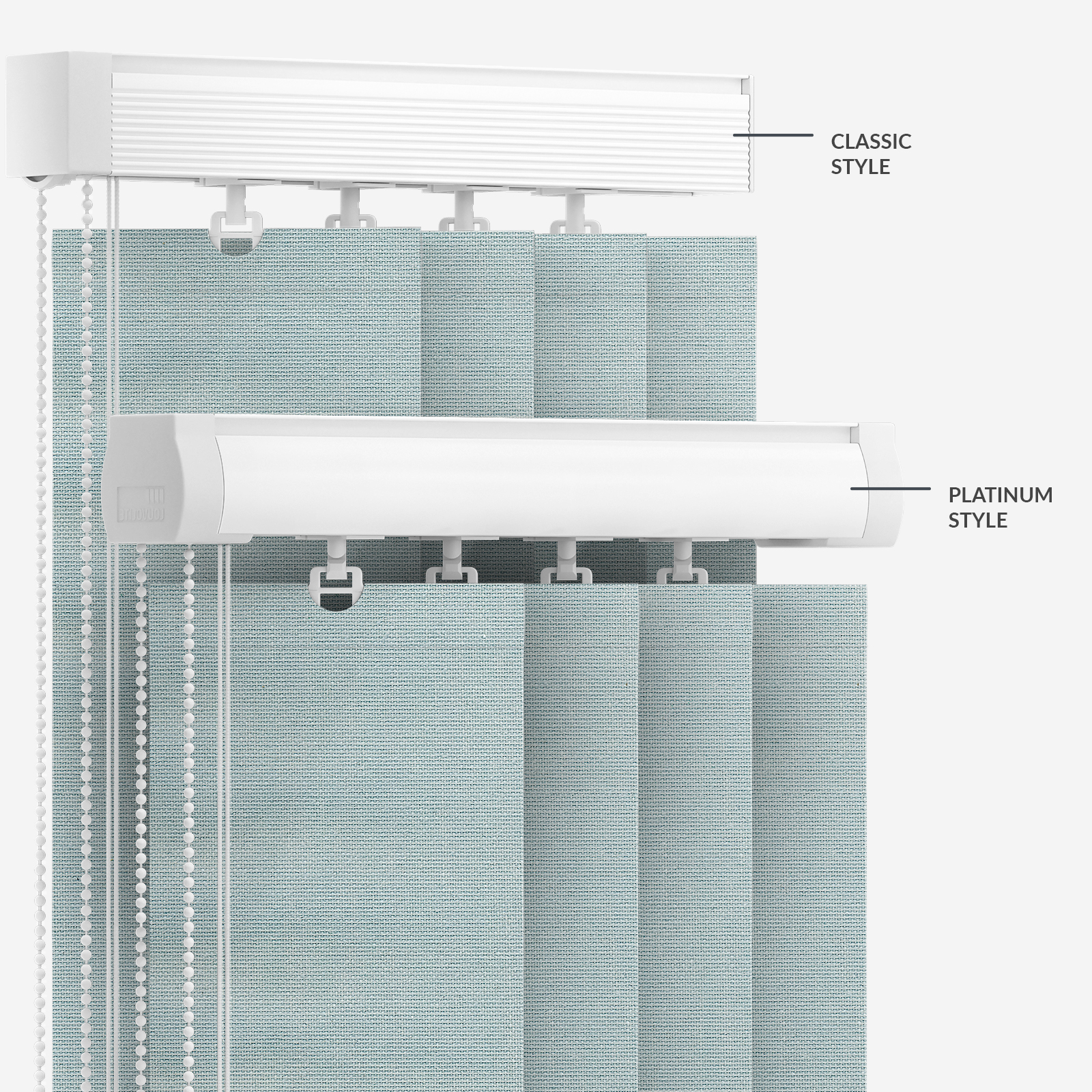 With its eye-catching plain pattern and timeless duck egg tones, this popular vertical blind will frame your interior with style.