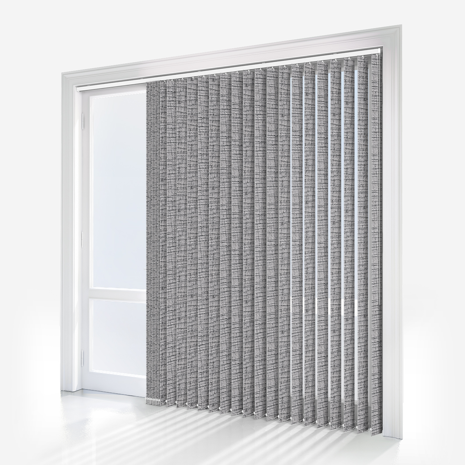 Displaying a chic patterned pattern and pleasant slate colour, this trending vertical blind will inject style into your space.