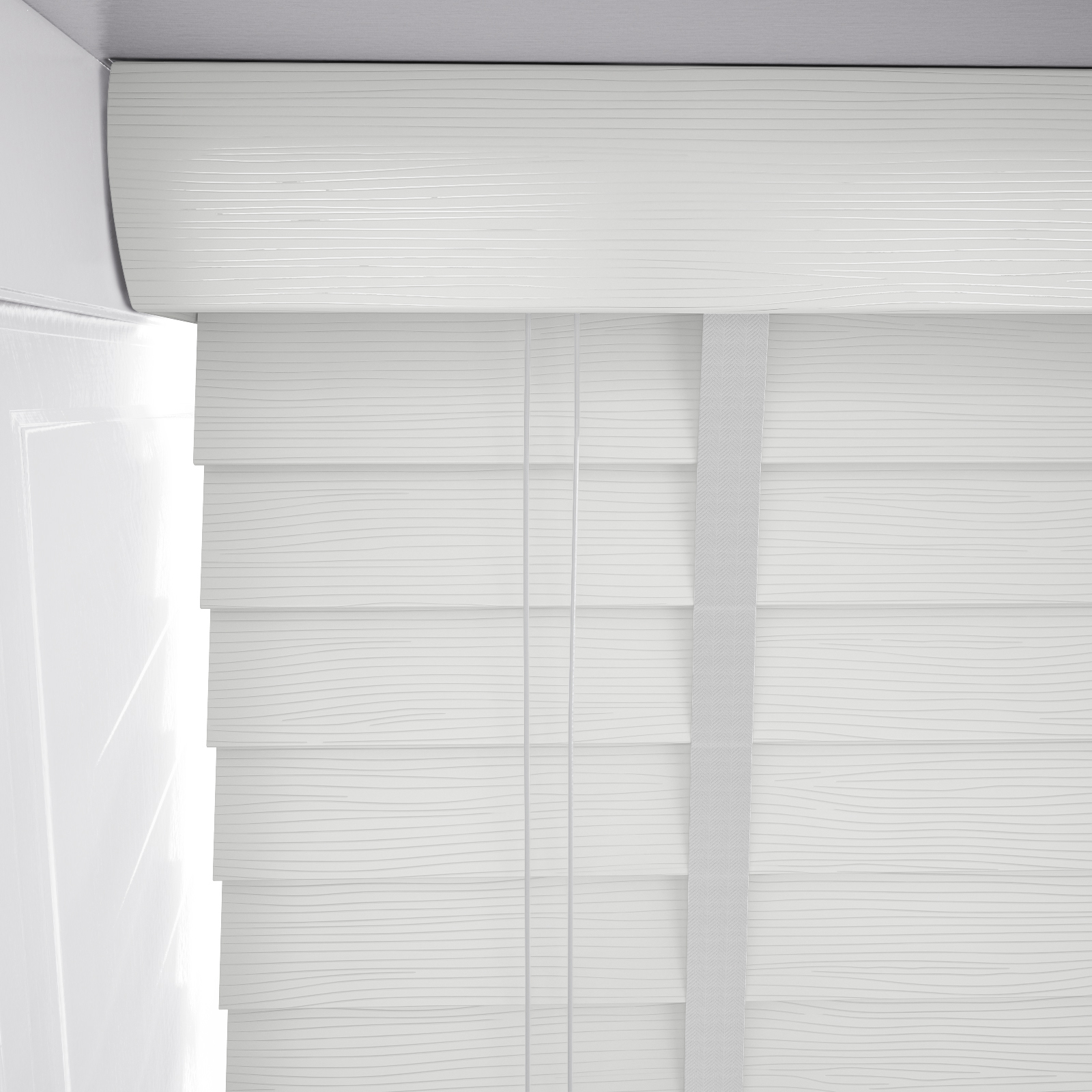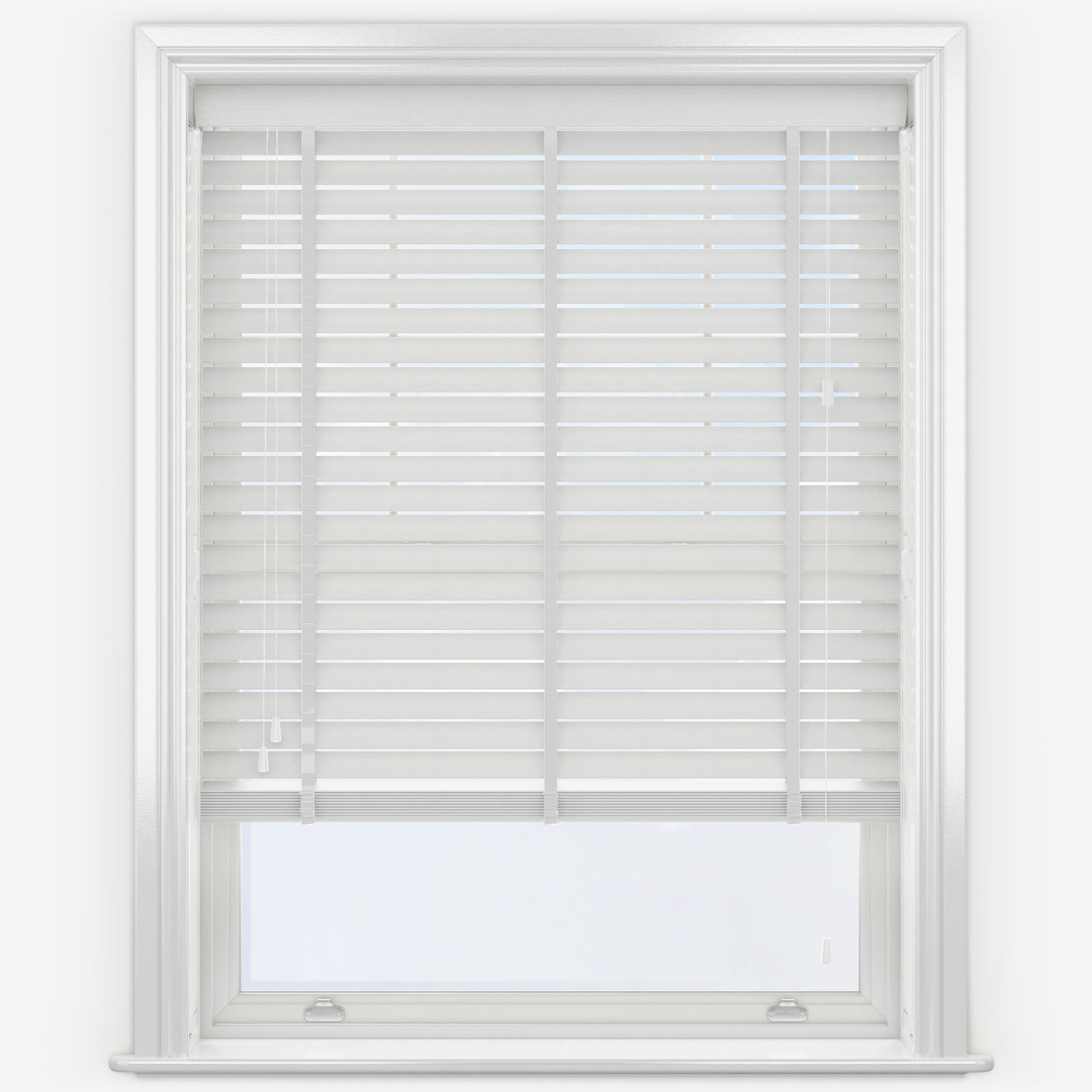 This gorgeous bright white faux wood blind, with its fine grain effect and sleek finish, captures the look of natural wood without any of the disadvantages. Its charming complementary white tapes make this made to measure blind a stylish and versatile window dressing.