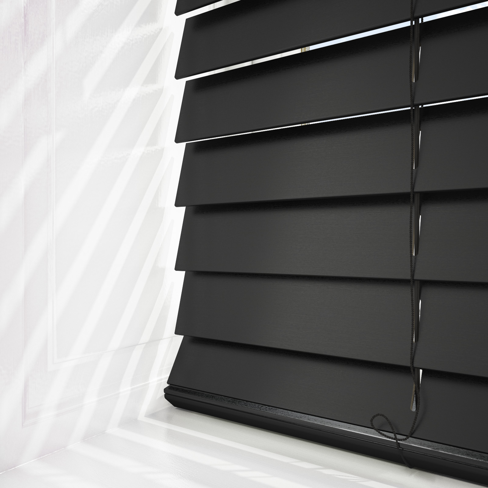 Embrace the dark with the Dalby Black Wooden Venetian Blind. Effortlessly stylish, the jet black will look spectacular as part of a monochrome decor theme, or will enhance brights for those that adore the use of bold colours!